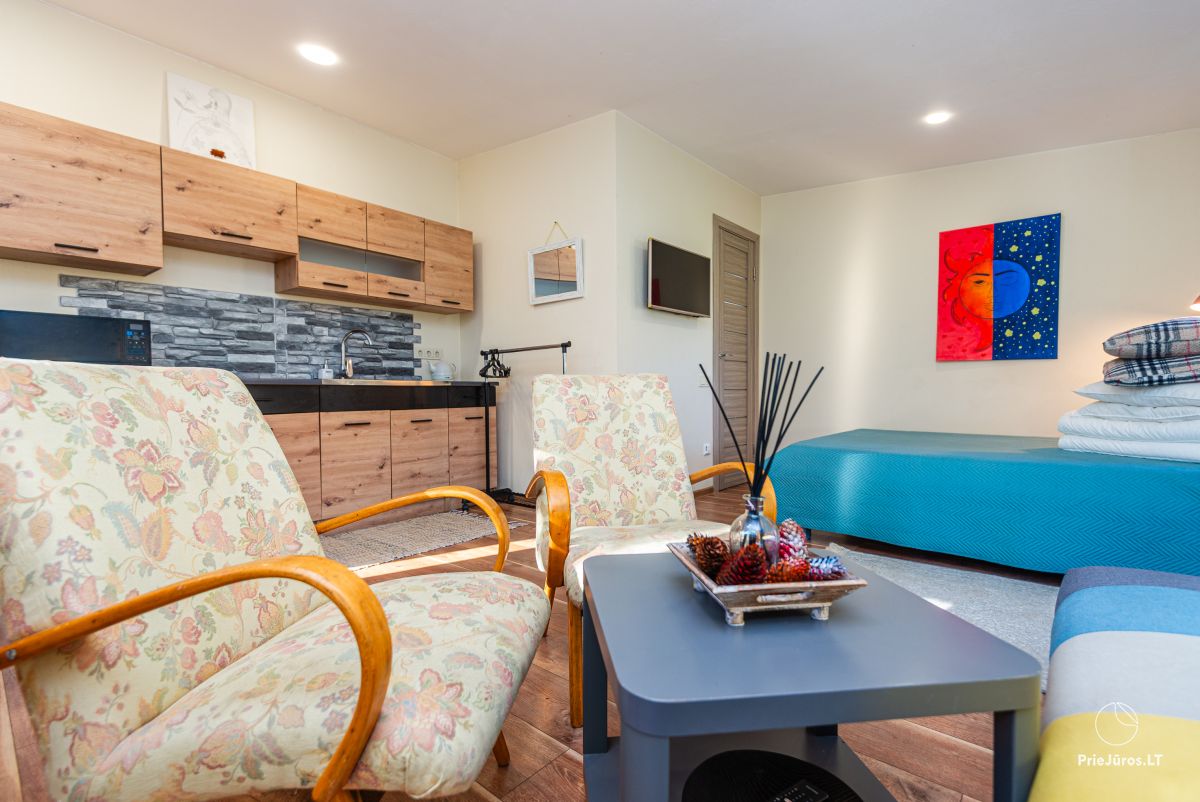 Are you looking for a cozy place to relax by the sea? Studio "Šiška" is a comfortable and stylish space with a private courtyard, located just 100 meters from the Baltic Sea (first line). An asphalt path leads to the beach, so you can reach the sea in just a few minutes.