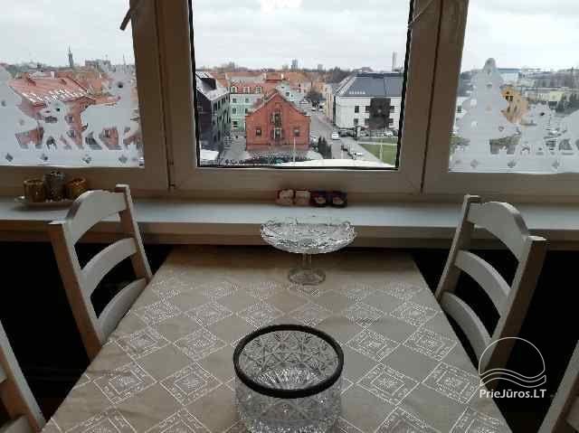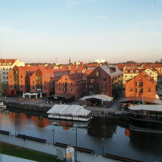 Three-room apartment for rent on the 6th floor (there is an elevator) with a view of the Danė River. A beautiful panorama of the old town opens through the window.