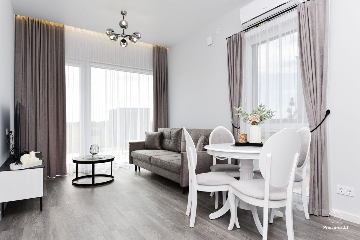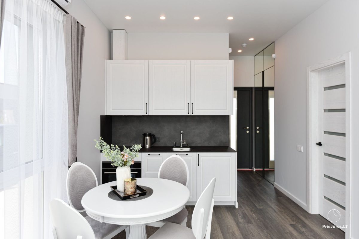 - Mini-kitchen: refrigerator with freezer, hob, oven, electric kettle, dishes and cutlery
