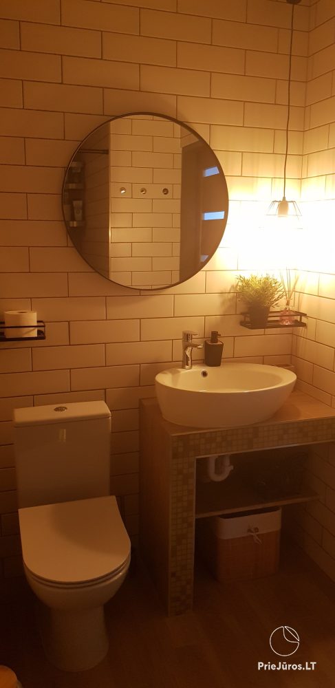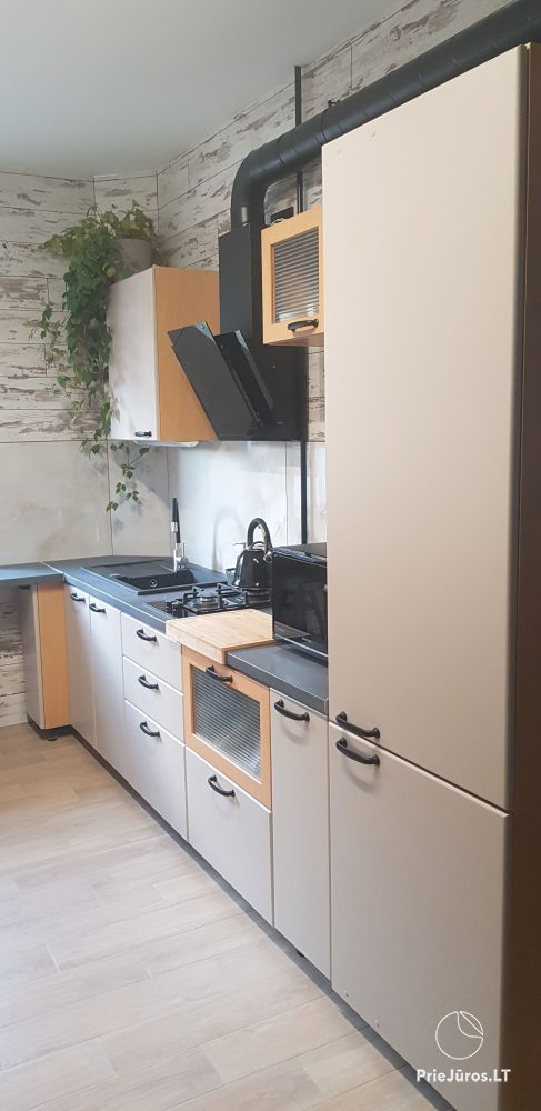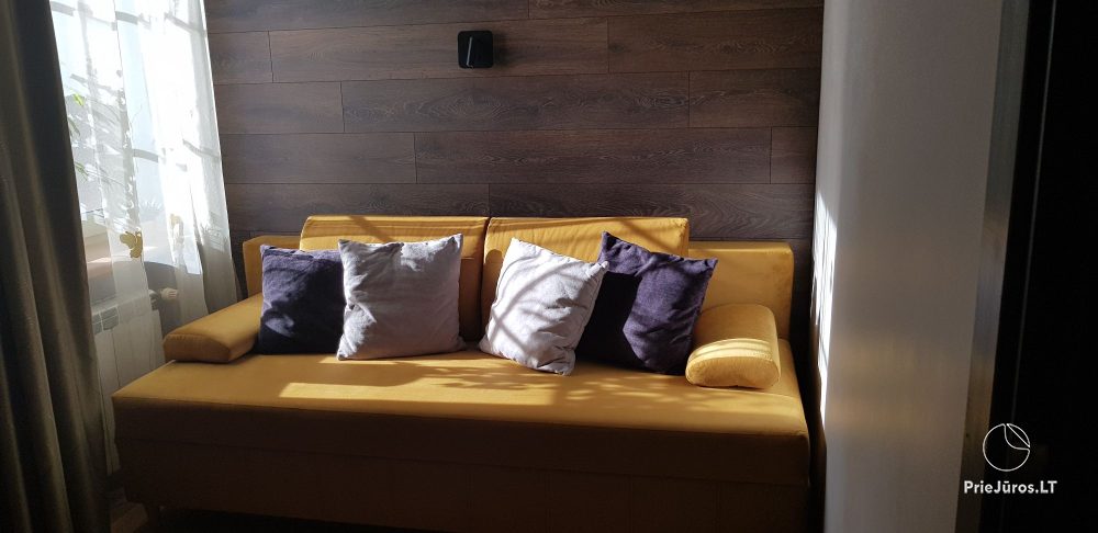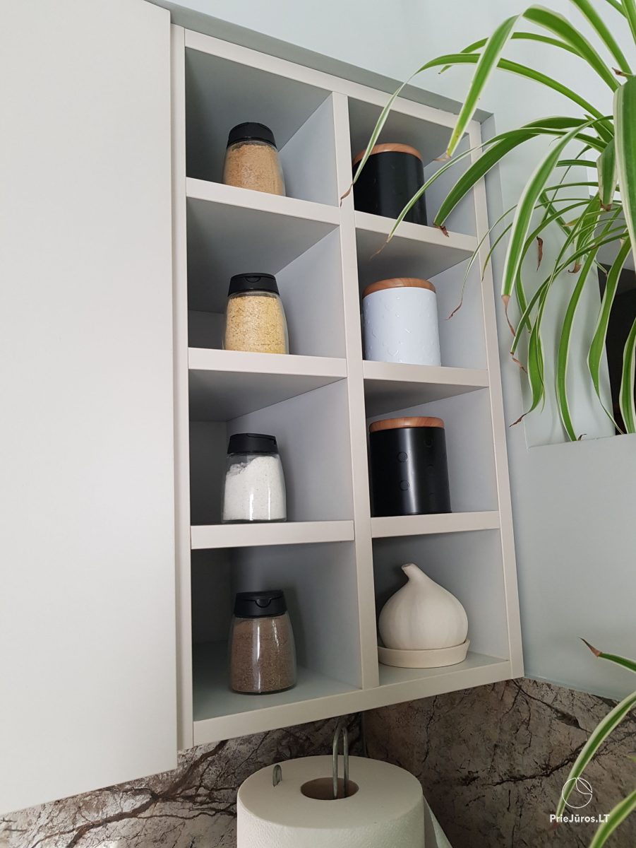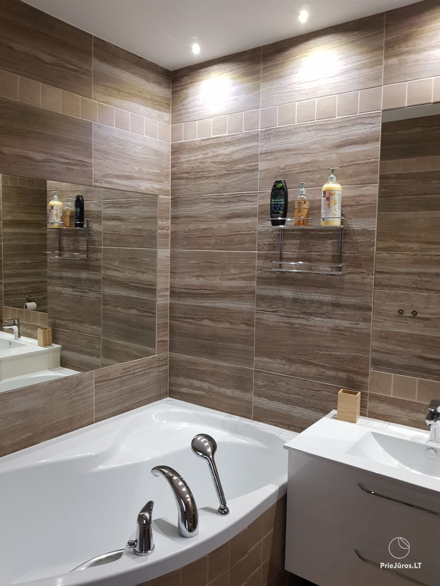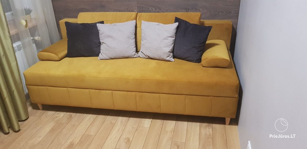 The apartment has all the necessary things for your quality rest: a separate bedroom, a living room with a dining room, a well-equipped bathroom, a separate laundry room.