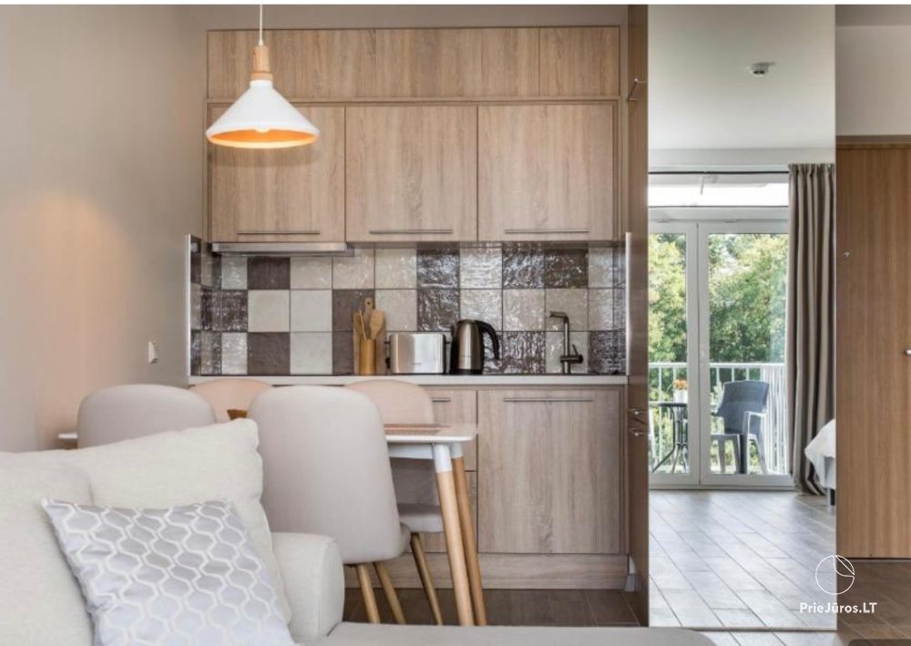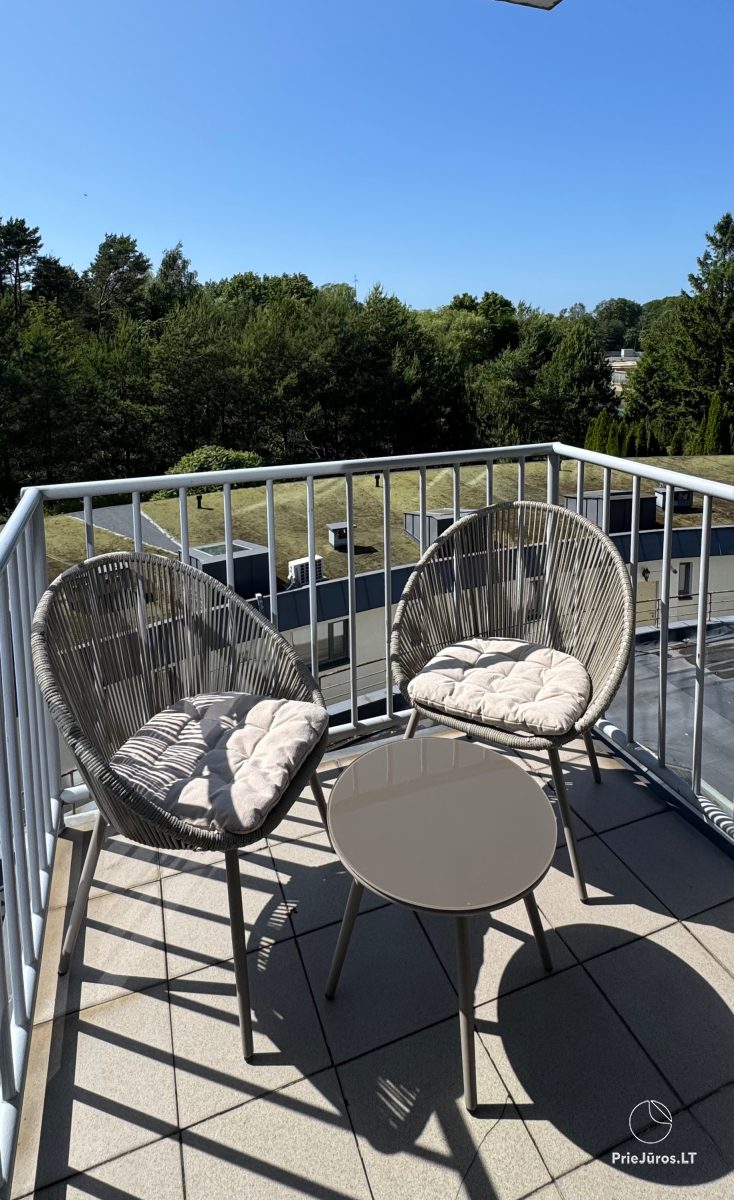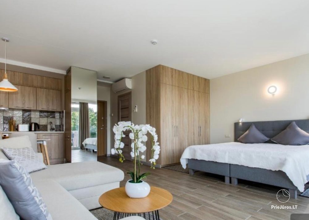 These stylish, bright and cozy apartments are located on the first strip, on S. Nėries Street, 100 meters from the sea, right next to the seaside pine forest