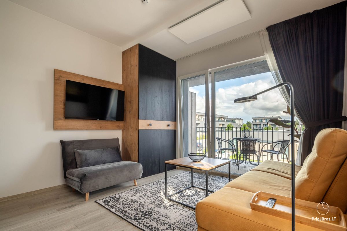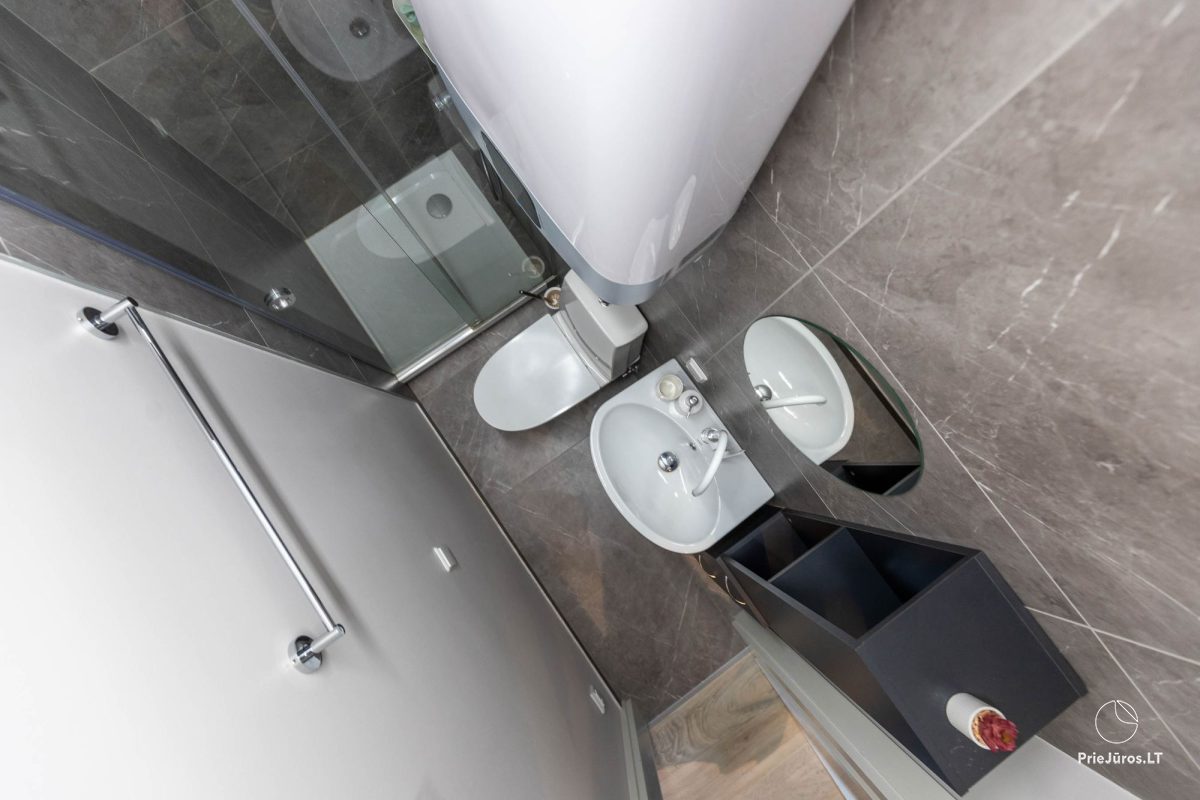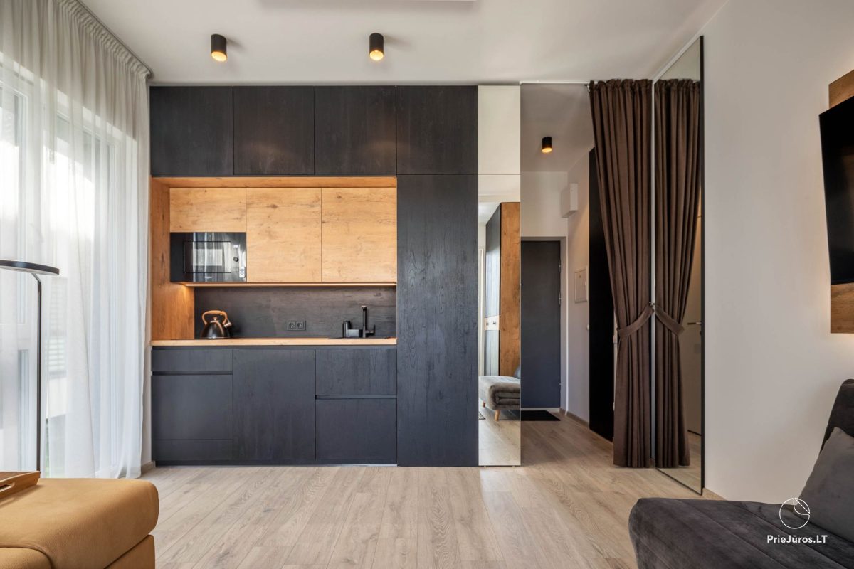 Studio apartment in Kunigiškiai offers accommodation with a private pool, free WiFi and free private parking for guests arriving by car. This apartment is located in a building built in 2022, in a gated community. It features an outdoor pool during the season (June 1 - September 1). There is also a sauna/hot tub/grill, which can be rented.