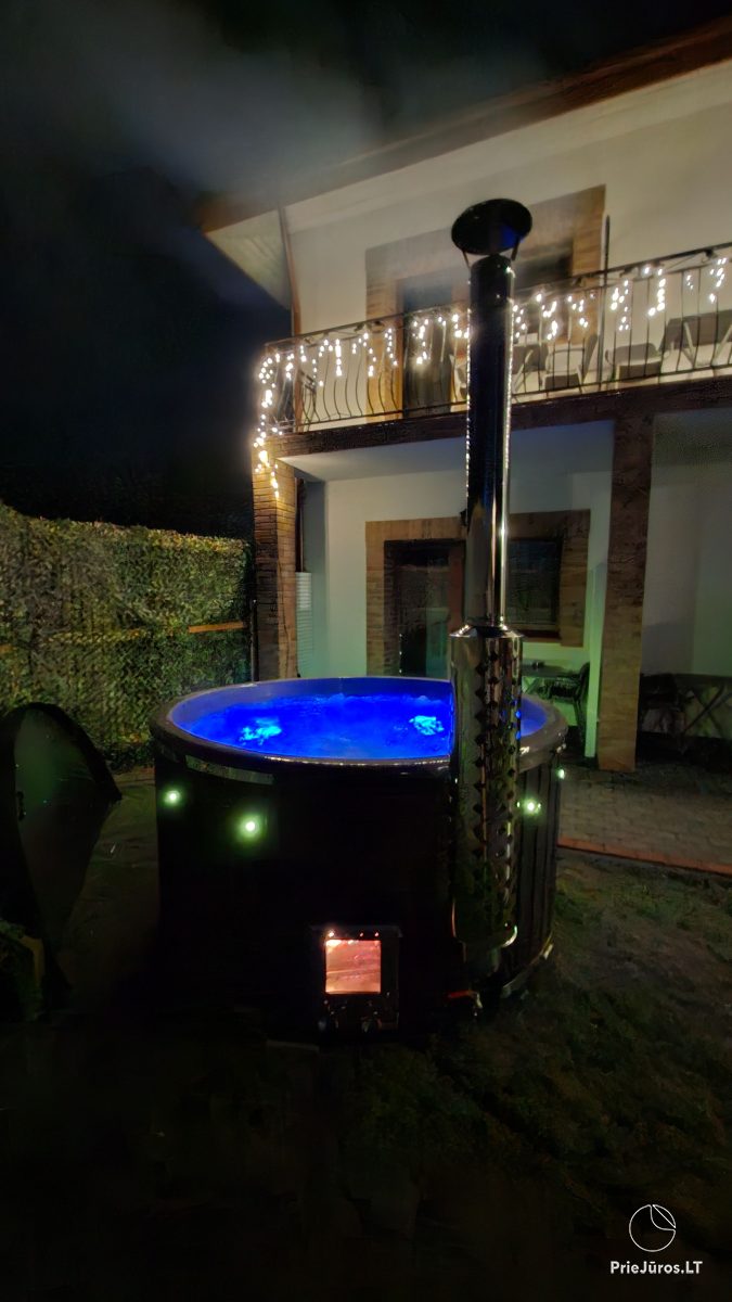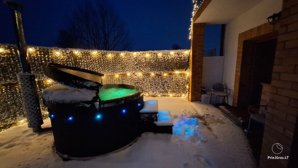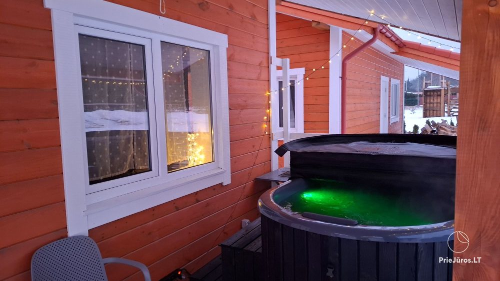 3 bedrooms, living room - kitchen, 2 toilets, shower, terrace, barbecue area under the roof with a large table in the gazebo, large hot tub for 8 people, sauna inside the house, hot tub - next to the terrace.