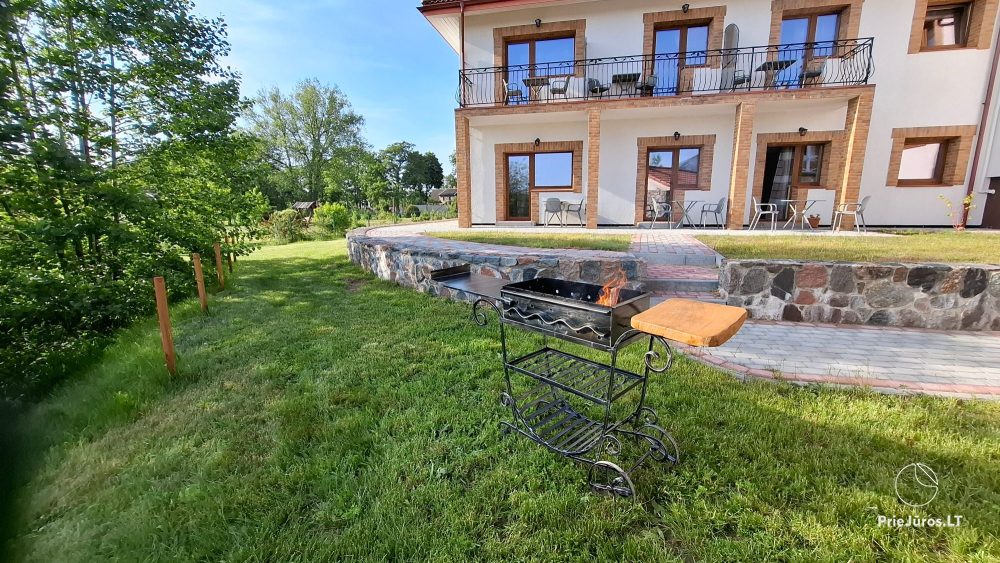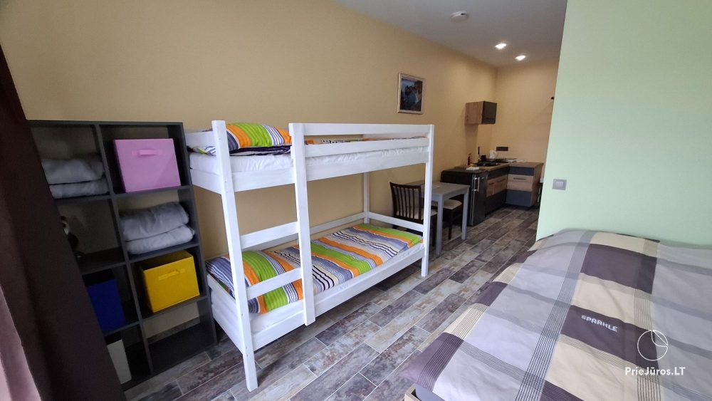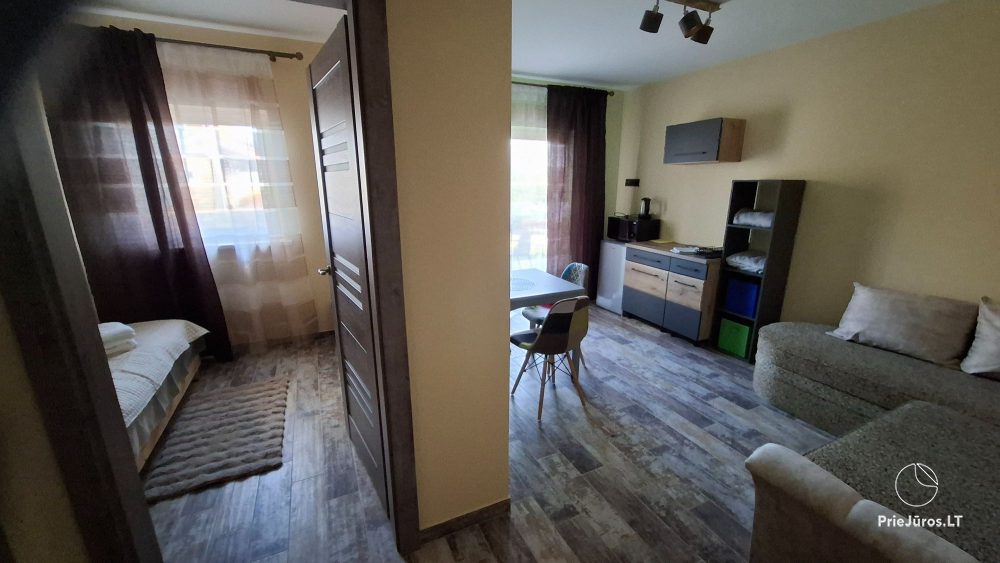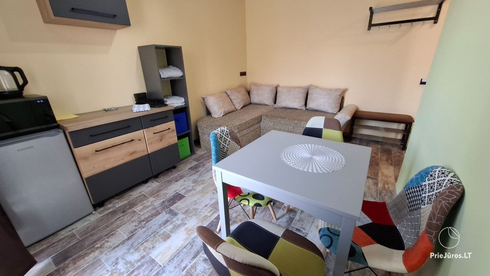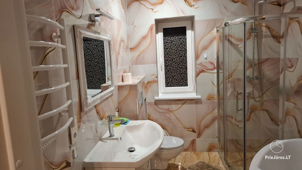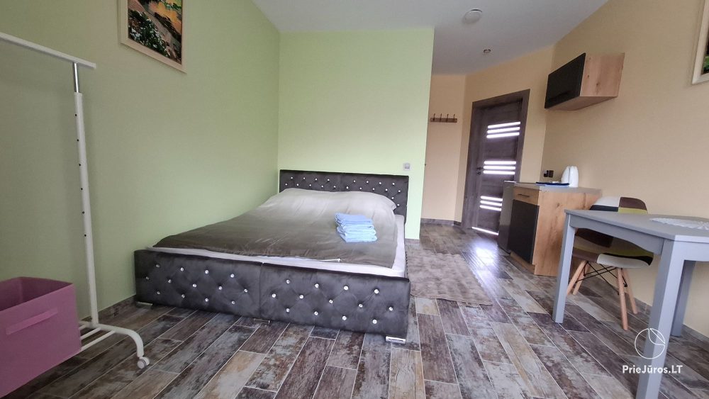 There are well-maintained walking and cycling paths to the city center and the sea. There is a bus stop nearby, from which buses run to the center of Šventoji and Palanga.