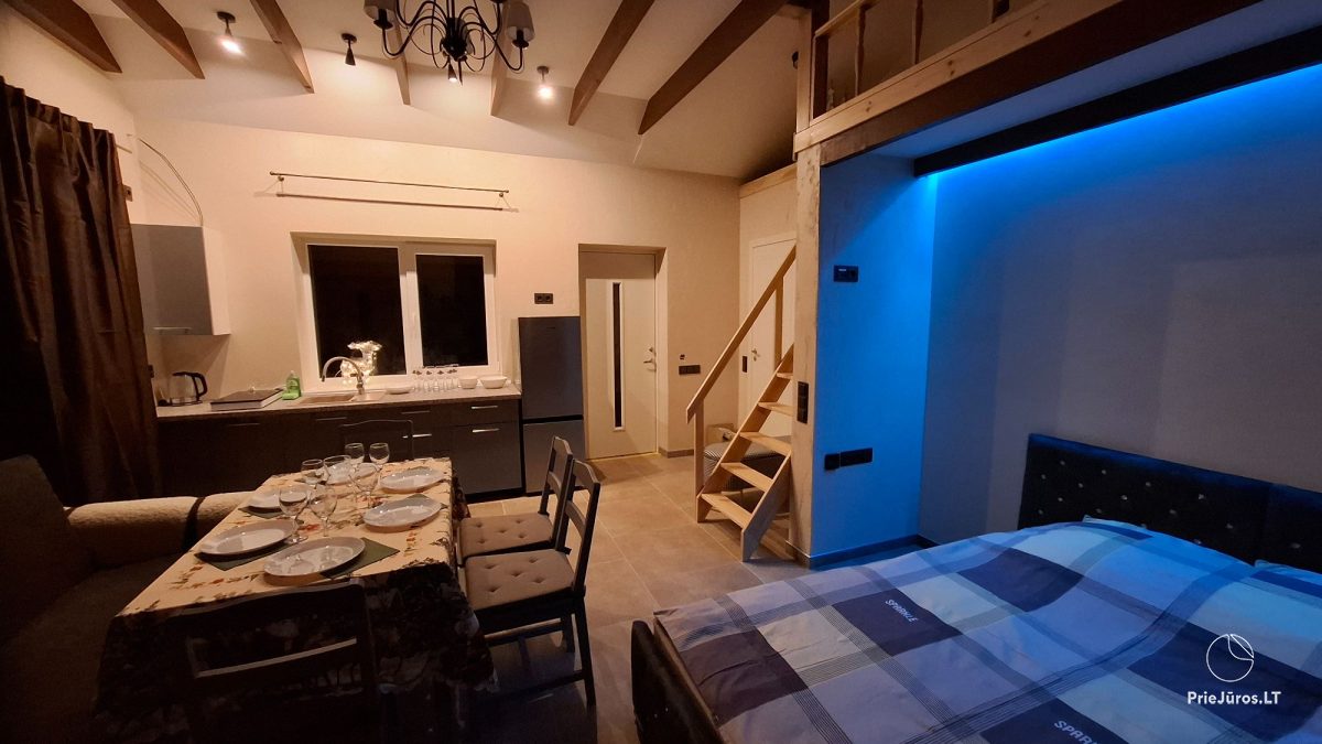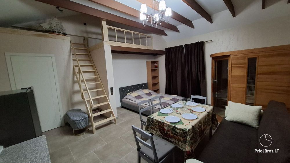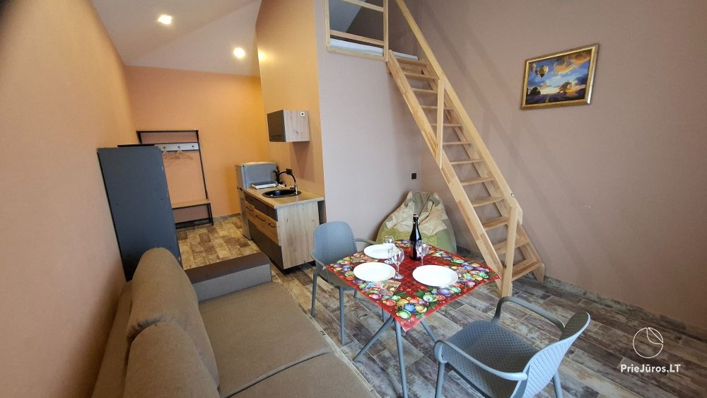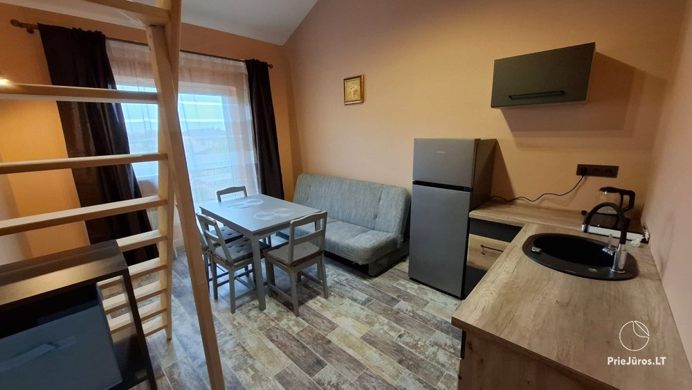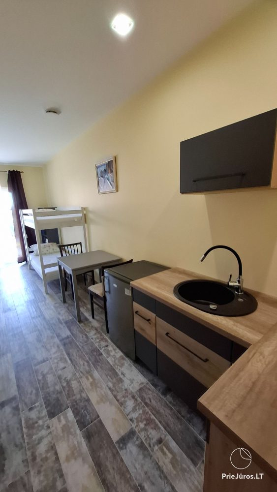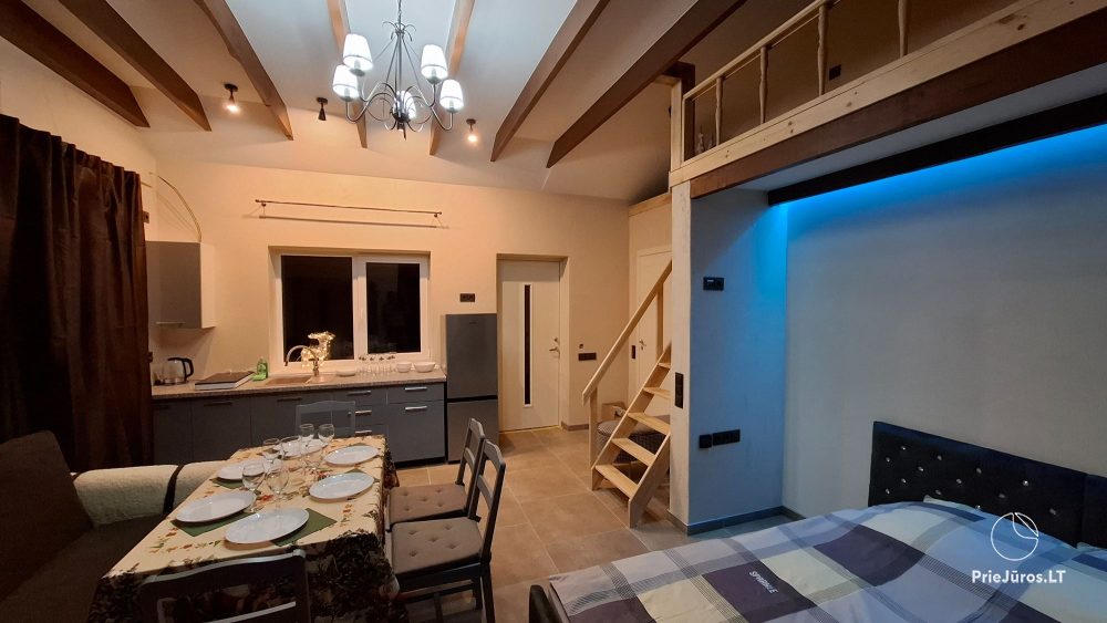 There are well-maintained walking and cycling paths to the city center and the sea. There is a bus stop nearby, from which buses run to the center of Šventoji and Palanga.