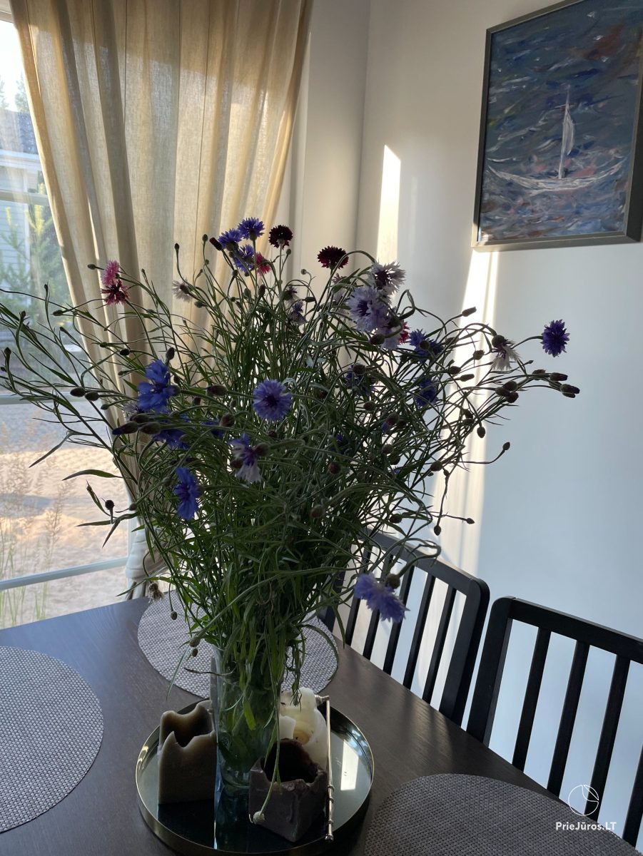 The bright and spacious holiday apartment “Namas kopose” is located in a quiet seaside area in Monciškės, just a few steps from the sea, next to the Ošupis bicycle path. Perfect for a quiet family holiday. It can accommodate up to 6 people (4 adults + 2 children).
