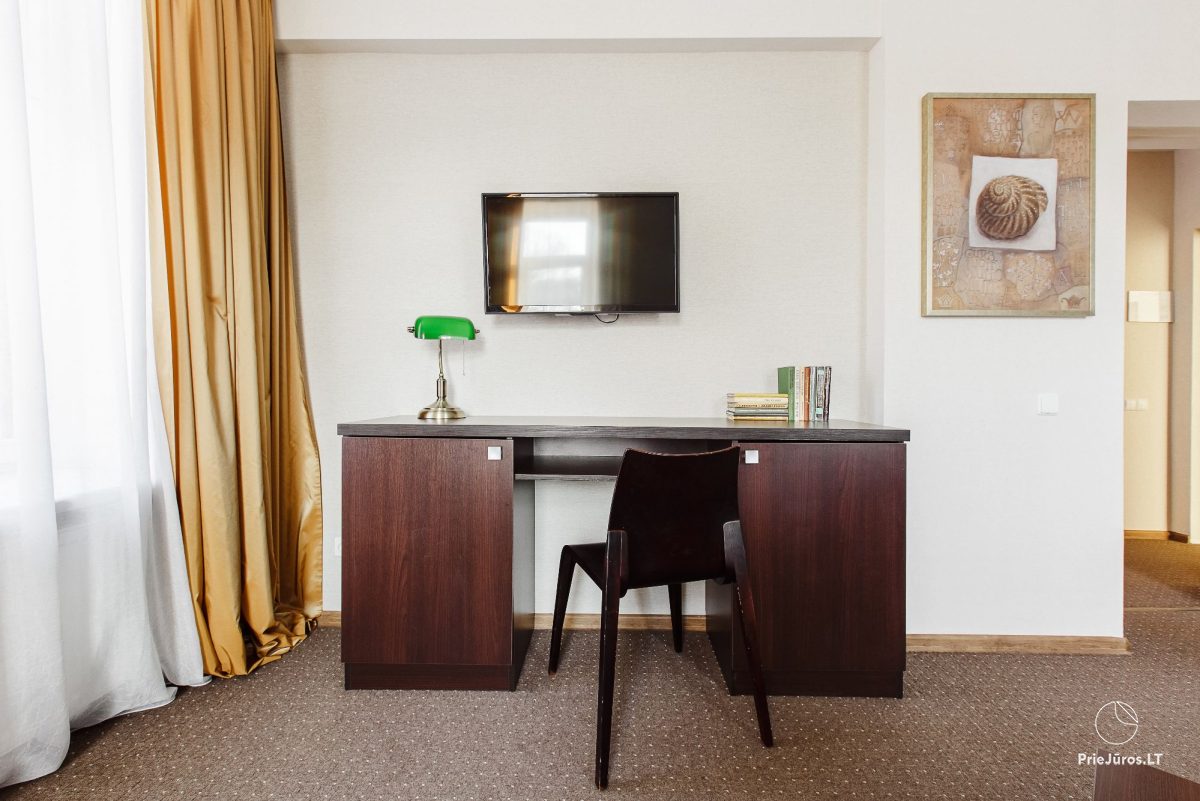 Every corner of the hotel hides an unexpected creative element that inspires visitors to discover something new. The eye is captivated by modern frescoes and works by Lithuanian artists, which fill the spaces with a unique atmosphere.