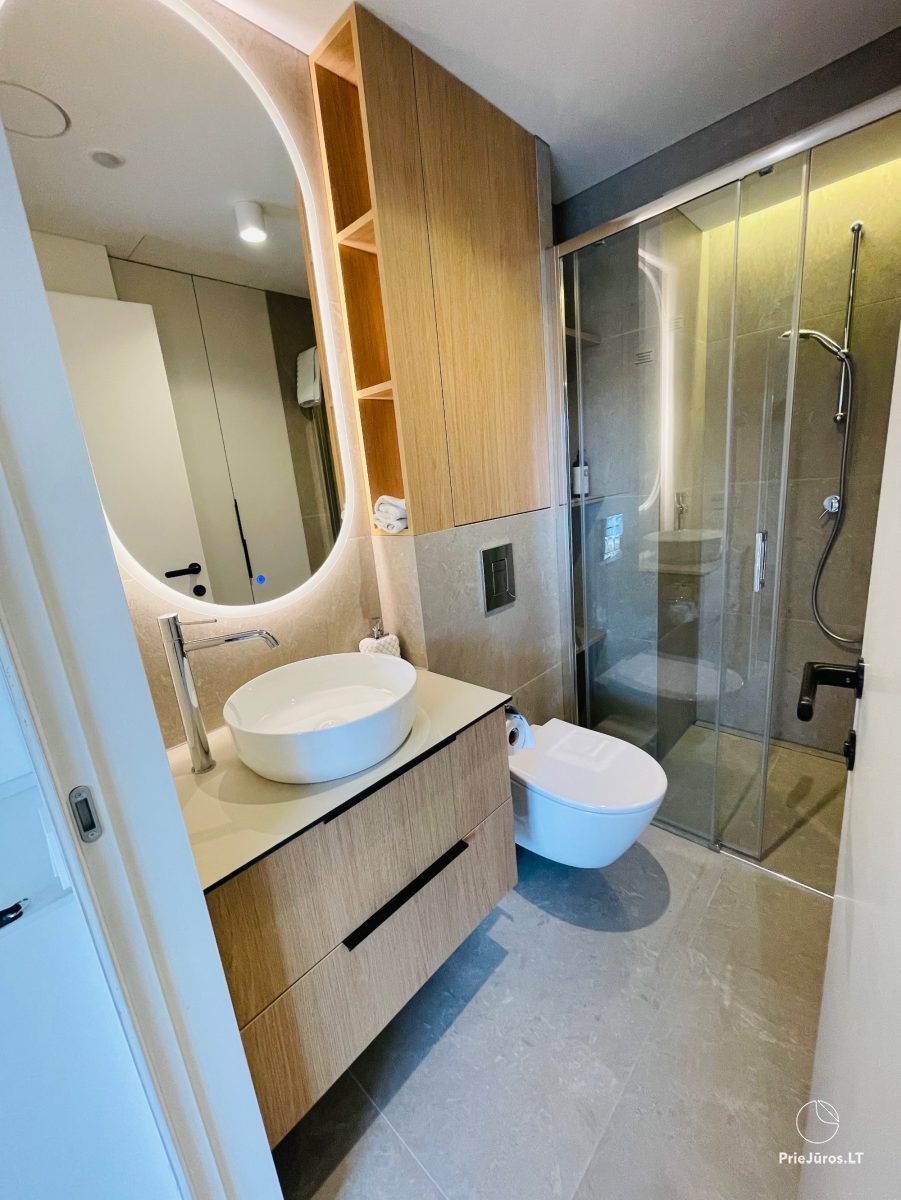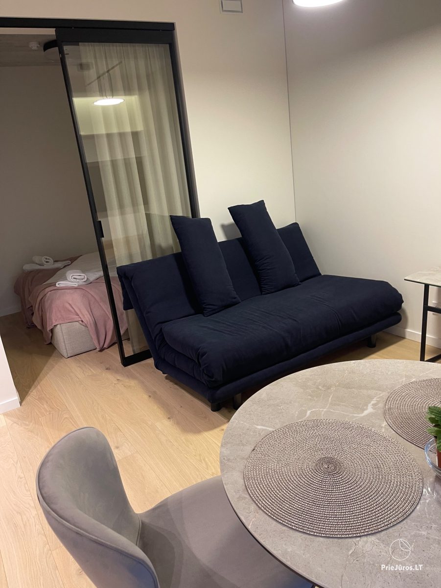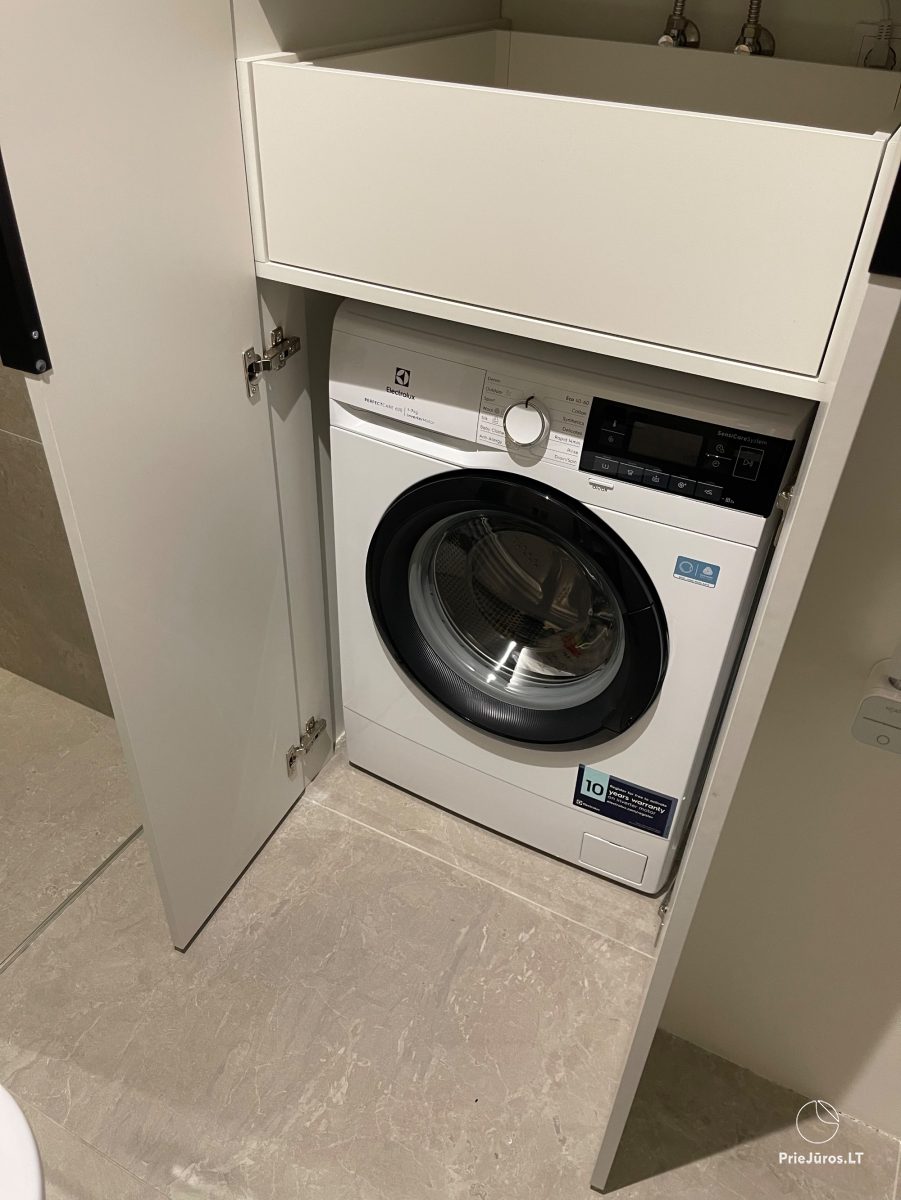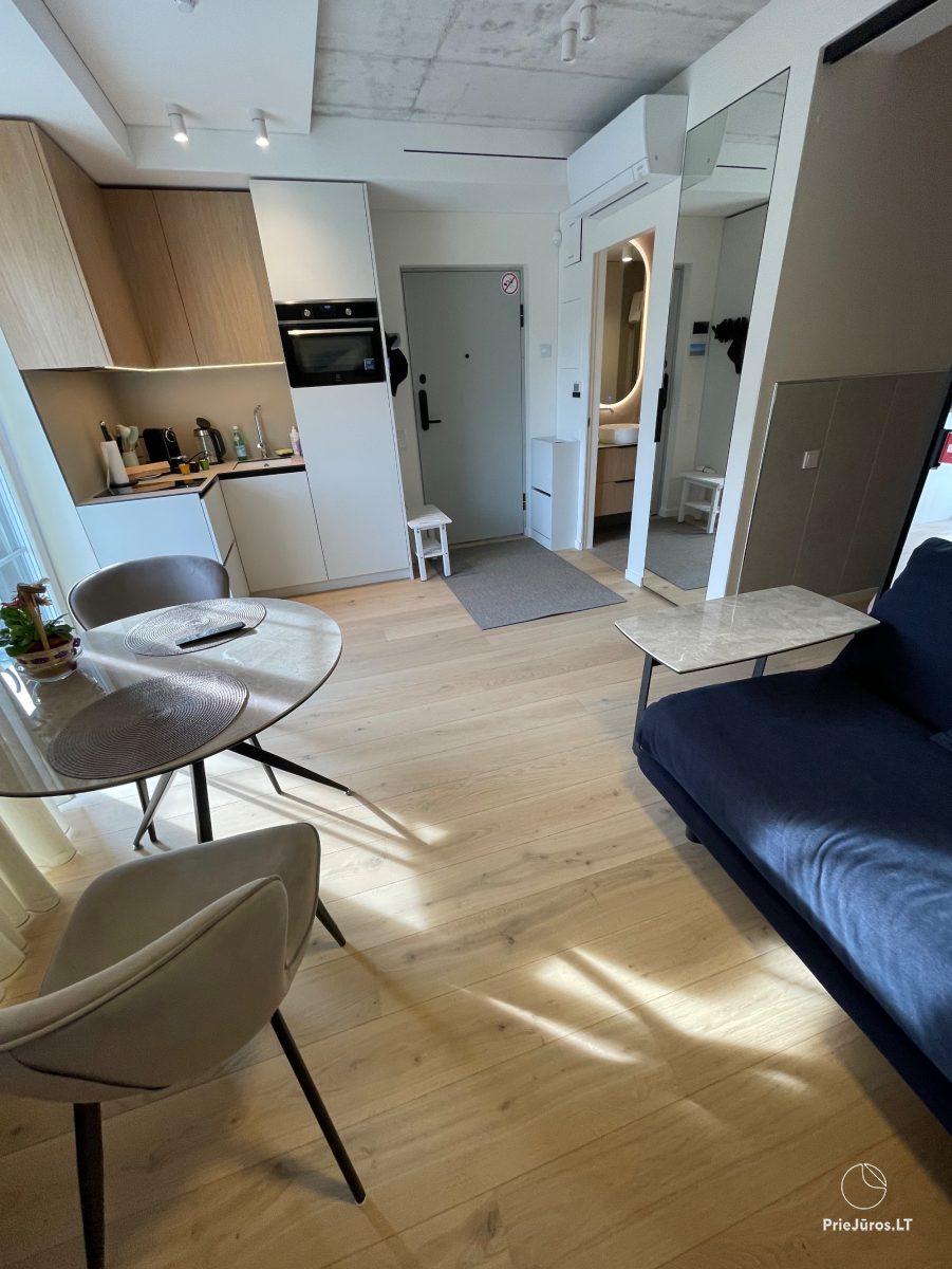 Are you looking for a place where the morning begins with the smell of a pine forest, and the sea or the lagoon is reachable with a short walk? A bright, warm and modernly furnished apartment is for rent on the prestigious Vėtrungių Street.