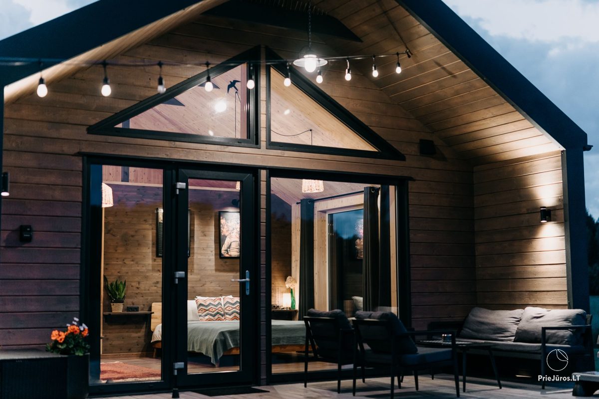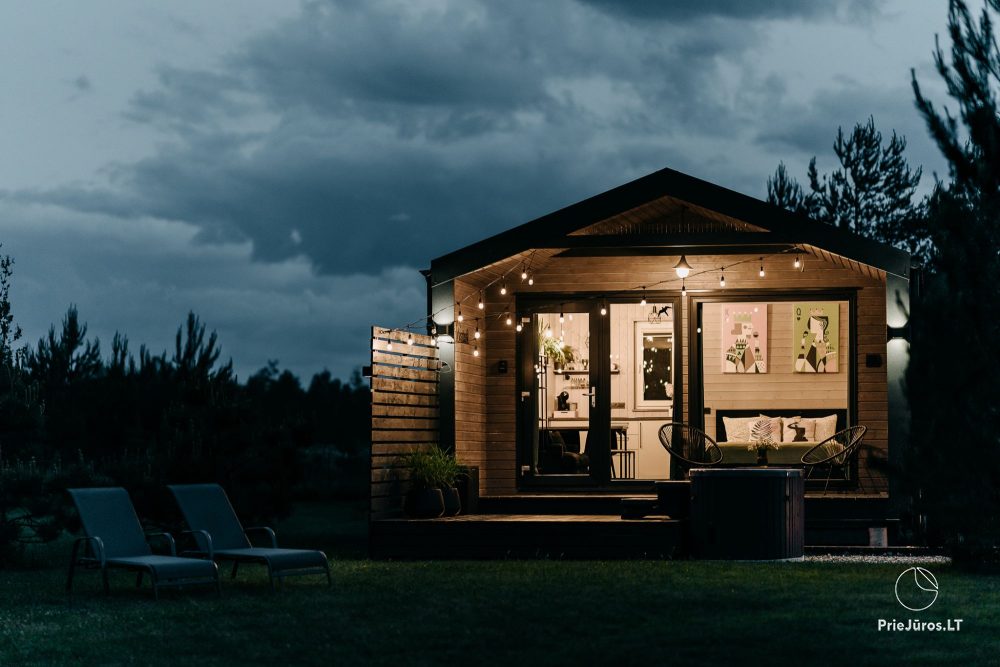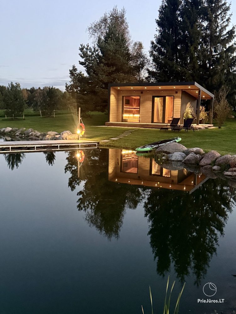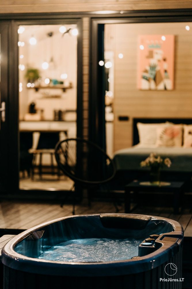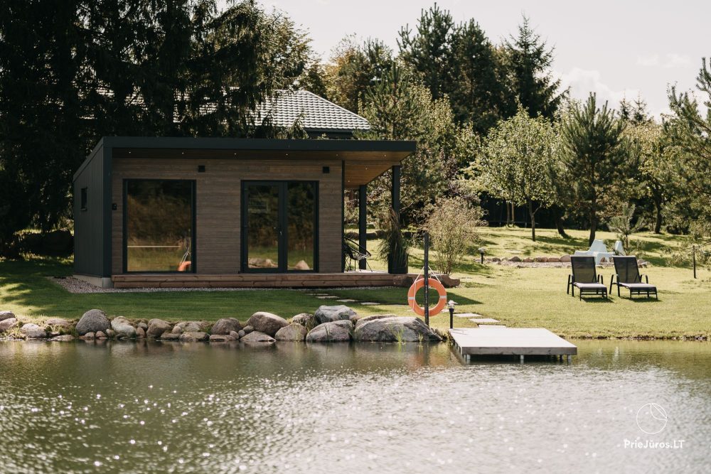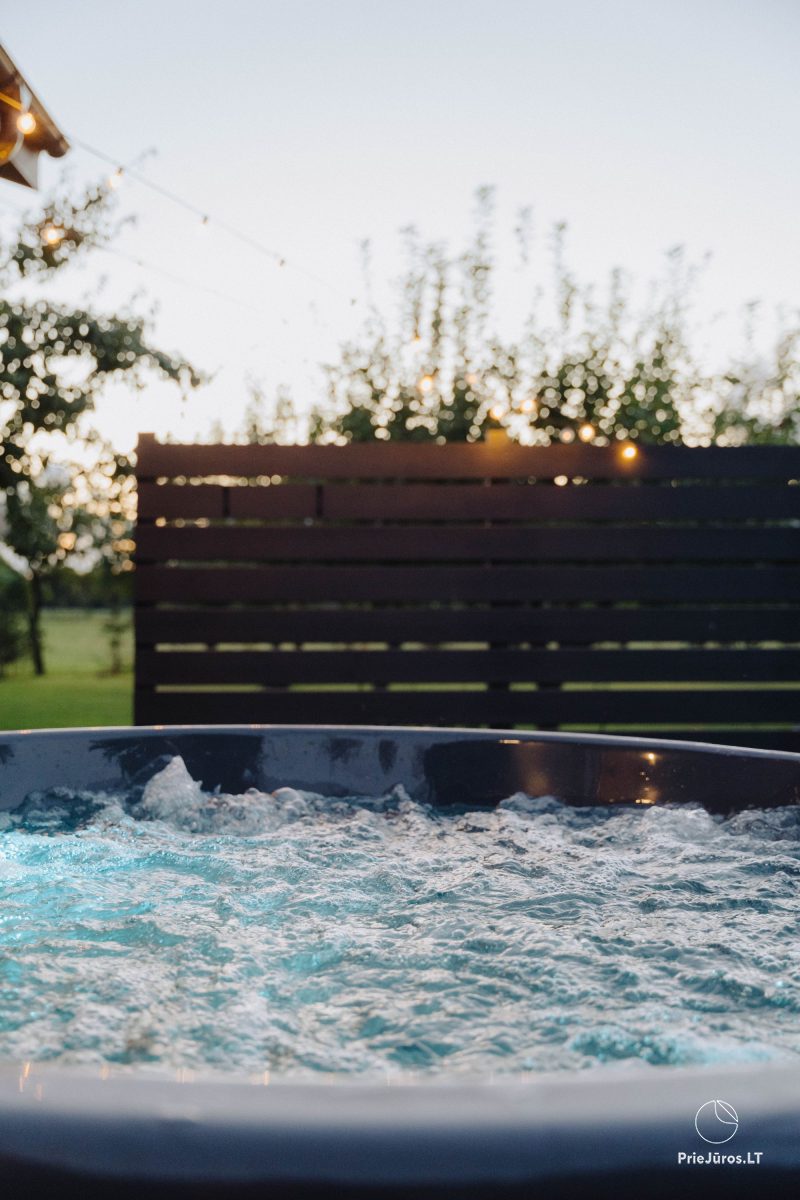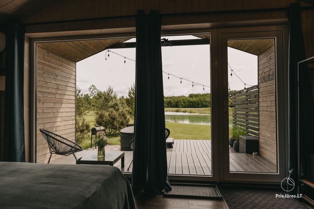 Aistis Cottage (up to 2 people), has a separate access to the water, and an outdoor whirlpool.