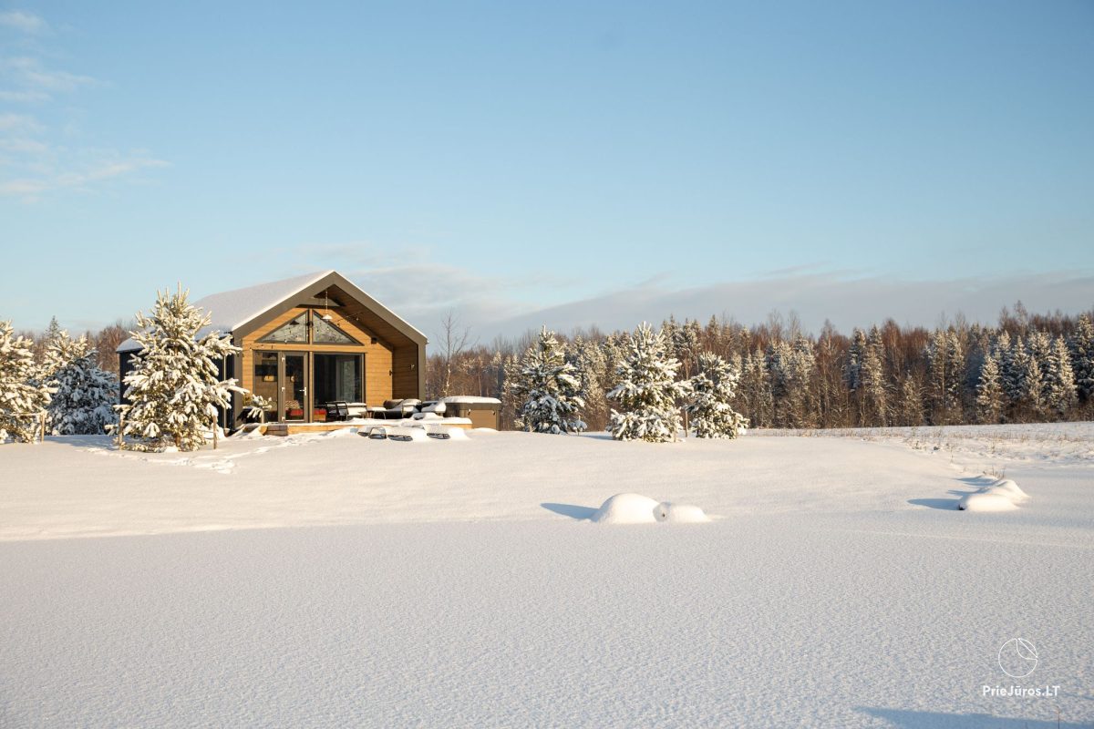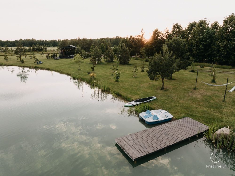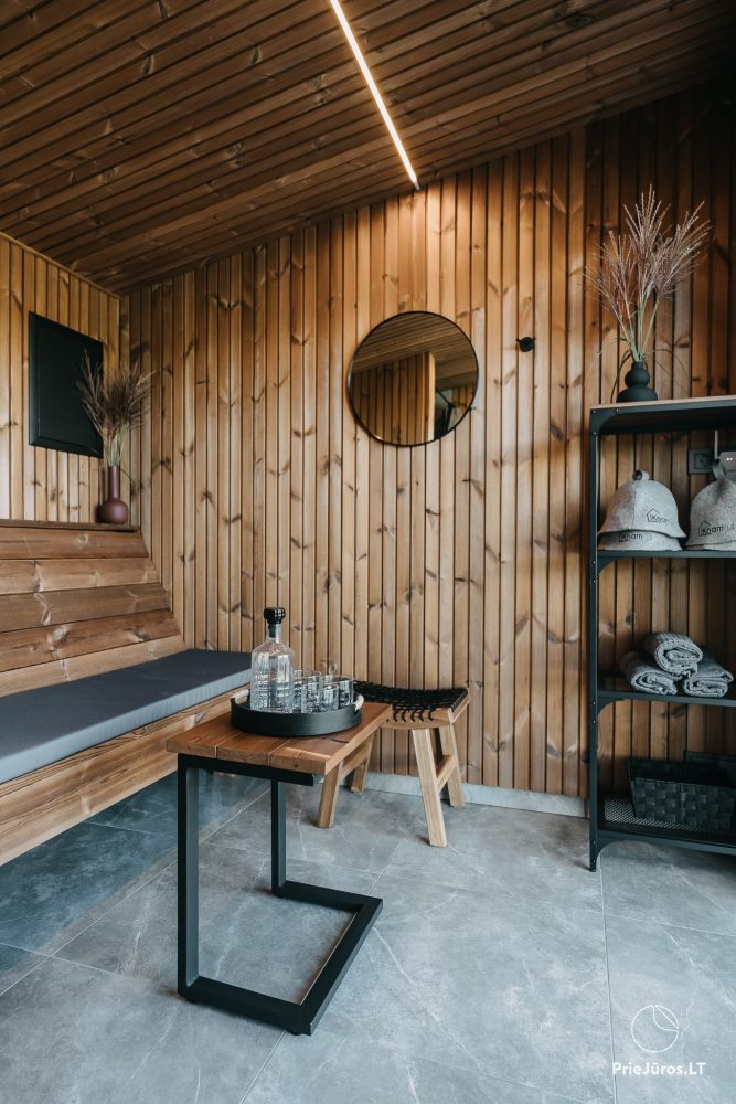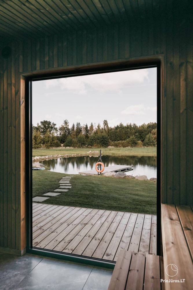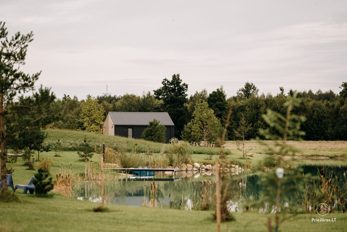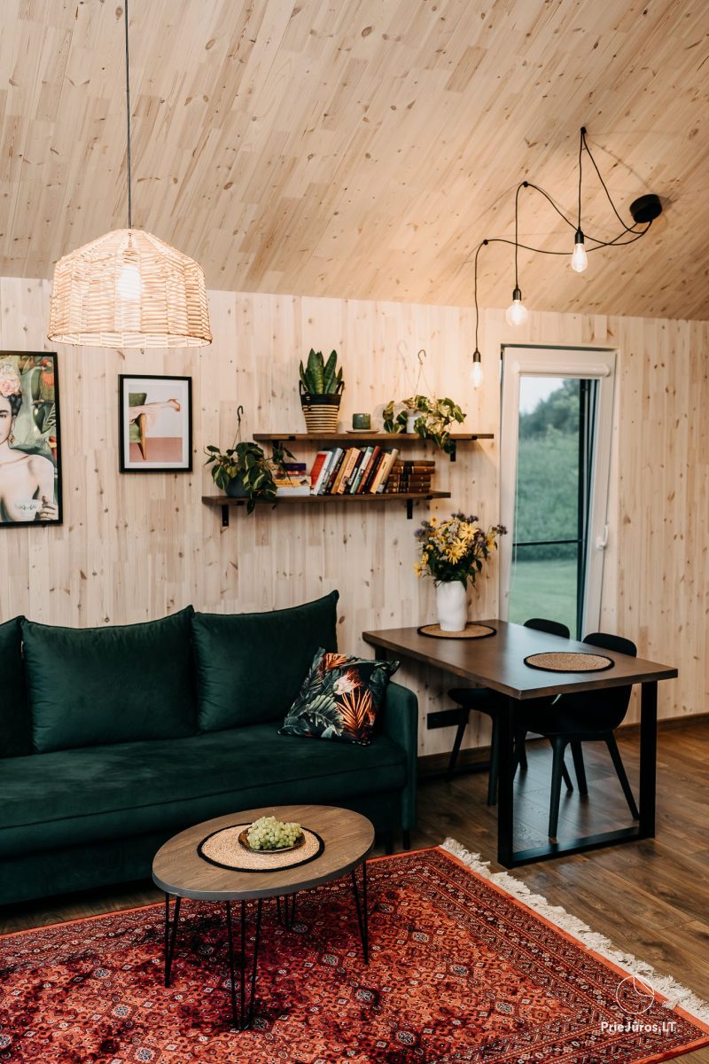 Aistis Cottage (up to 2 people), has a separate access to the water, and an outdoor whirlpool.