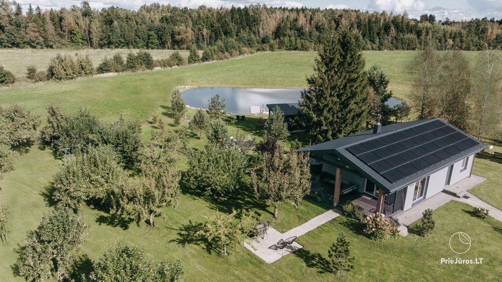 A cozy house for two - intended for a real, quality, romantic vacation for two (no children, only adults!). The house is located next to a huge private pond, with a panoramic window to the nature and a huge terrace where you can enjoy a hot tub under the open sky. You will be alone as far as the eye can see, privacy is guaranteed (the main IKnam is 120 meters away, separated by trees and a garden, so we really thought a lot about your privacy). Only adults (without children) can stay in the cabin, pets are not accepted.