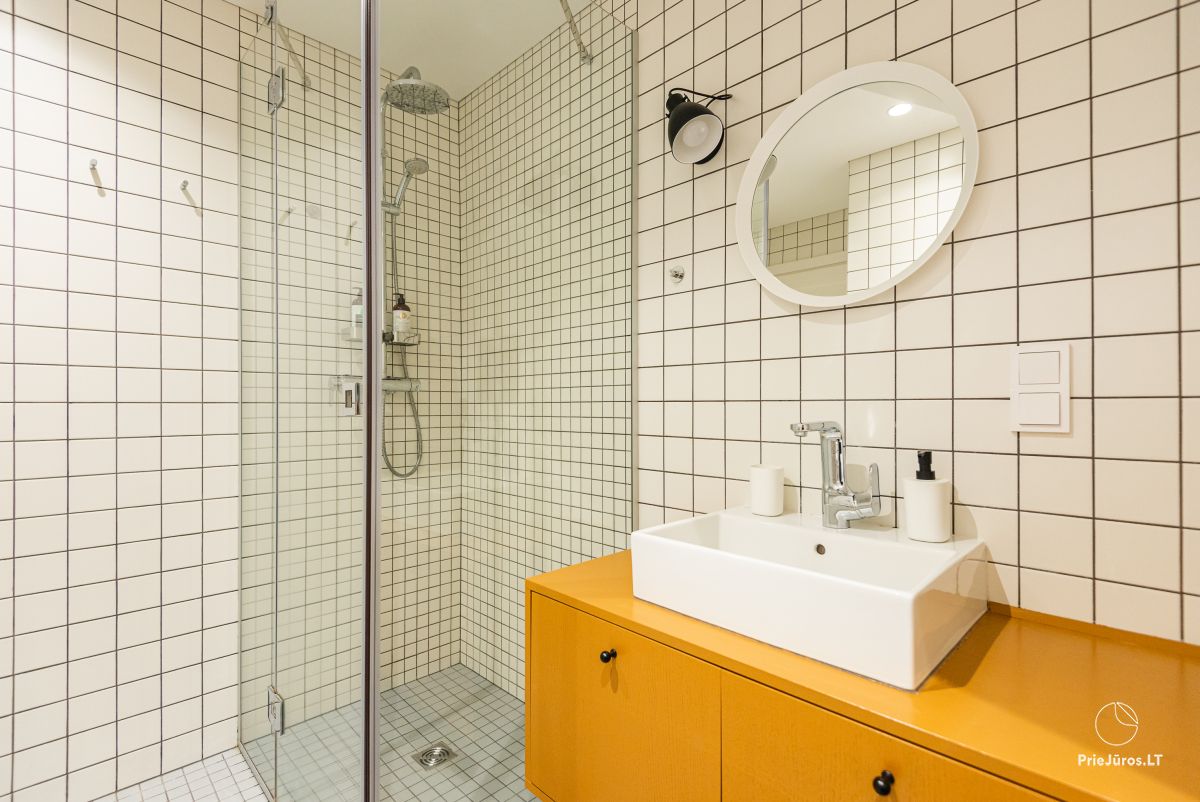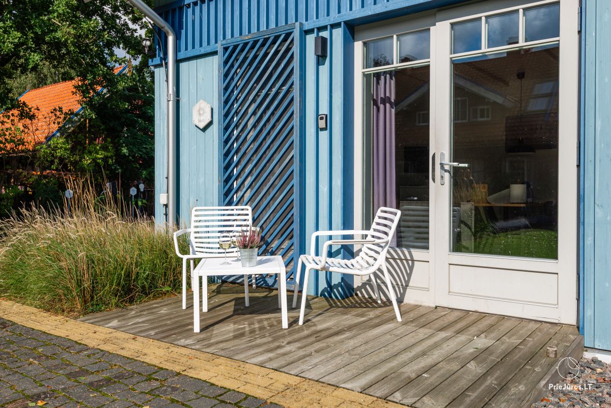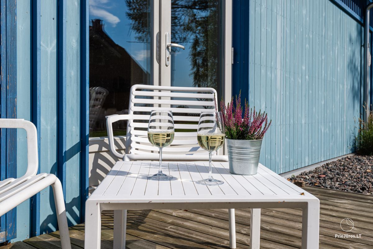 Here you will experience peace and unique romantic moments surrounded by nature. The apartments have everything you need for a cozy and comfortable vacation. The terrace offers a wonderful view of the Curonian Lagoon and a courtyard full of greenery with quietly rustling birches and graceful fir trees. Here the air is filled with freshness, and time stands still. Everything around invites you to relax, feel and love…
