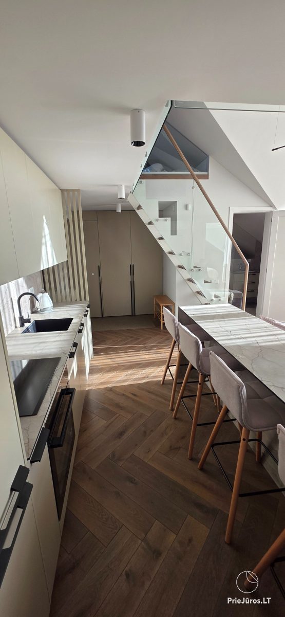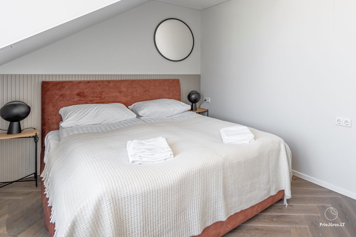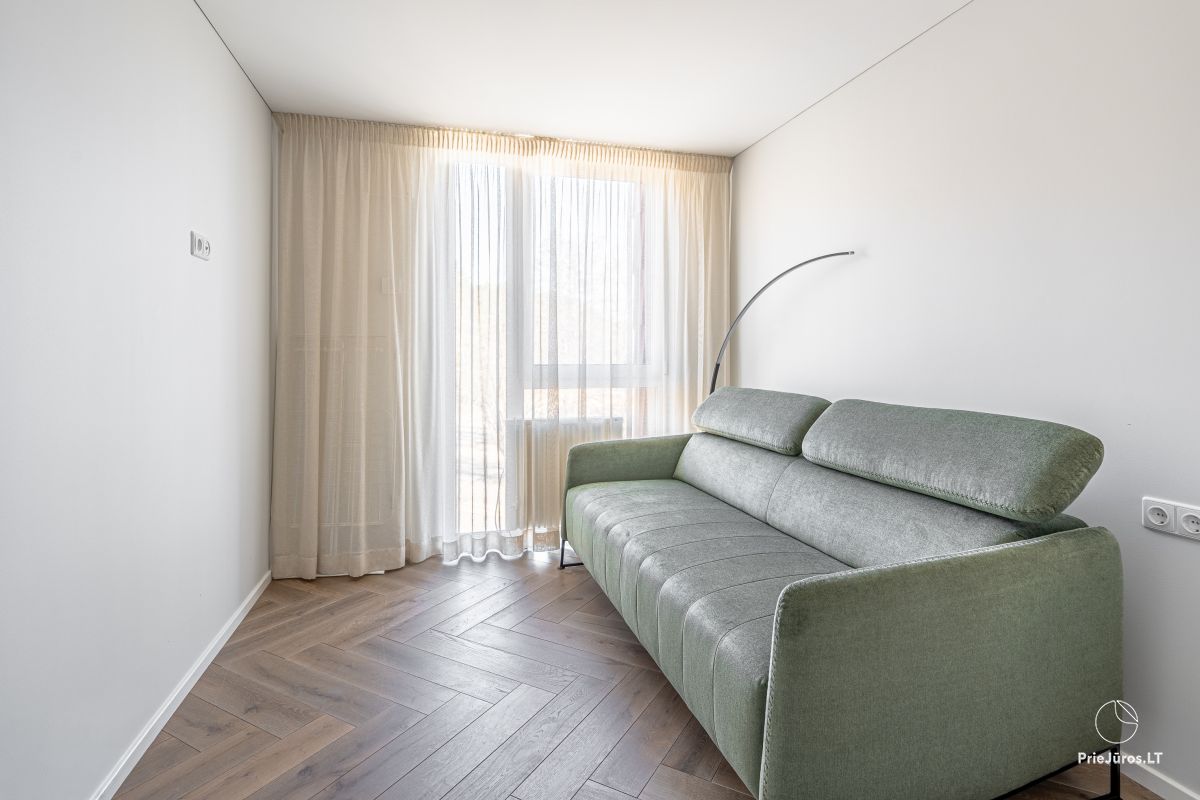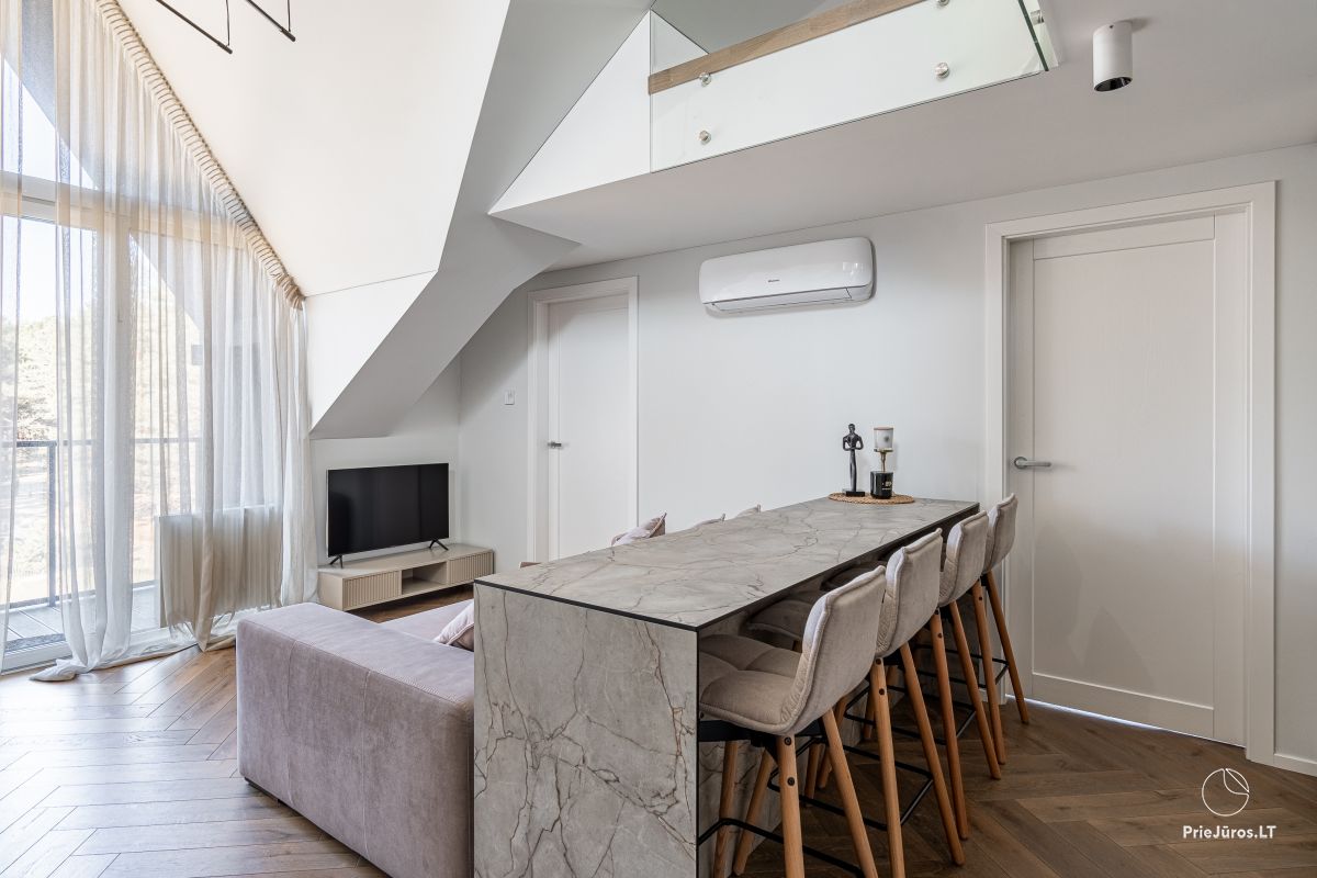 Discover sophisticated relaxation just a few minutes from the waves – these modern, spacious apartments are located in the prestigious part of Kunigiškės, near Palanga. Only 200 meters from the beach, so every morning you will be greeted with the sound of the sea and the freshness of the pine forest.