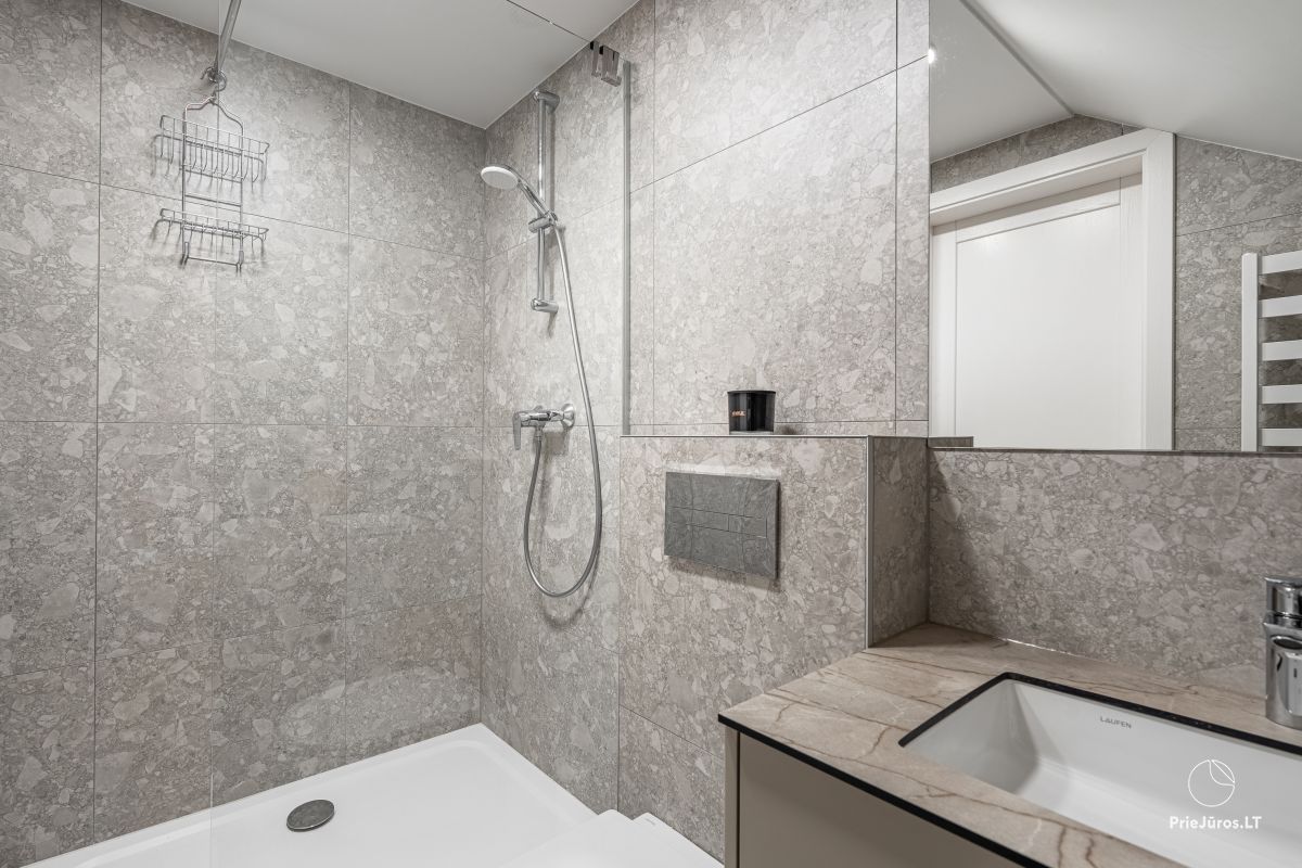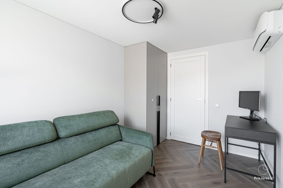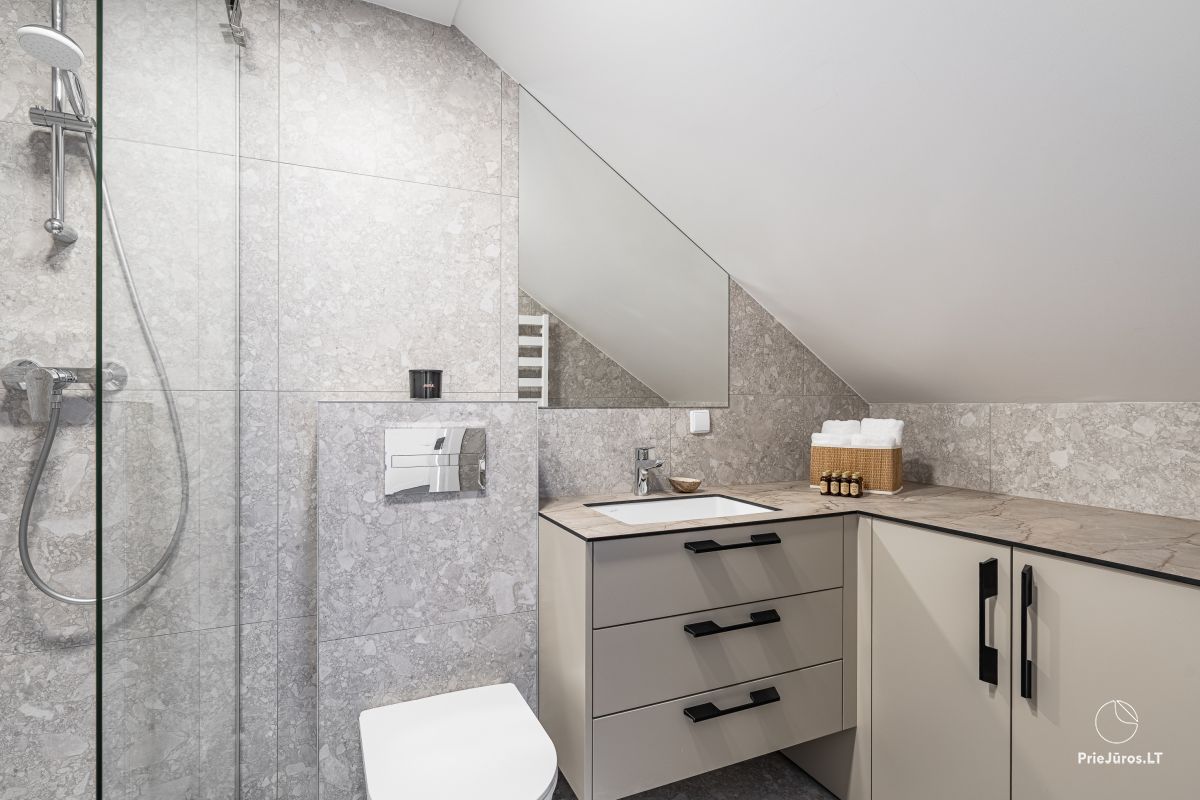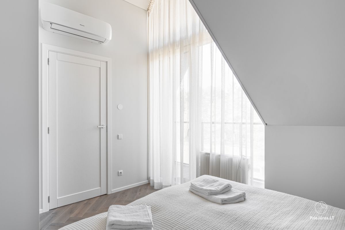 Discover sophisticated relaxation just a few minutes from the waves – these modern, spacious apartments are located in the prestigious part of Kunigiškės, near Palanga. Only 200 meters from the beach, so every morning you will be greeted with the sound of the sea and the freshness of the pine forest.