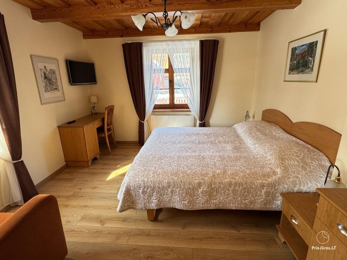 The villa is located in the very center of Nida. Here are comfortably furnished rooms, wireless internet, the villa has a private courtyard, we can offer our guests free parking. The villa is characterized by authentic architecture typical of the Curonian Spit, original carvings and an impressive thatched roof. Nearby are many cozy cafes, restaurants, souvenir shops and galleries.