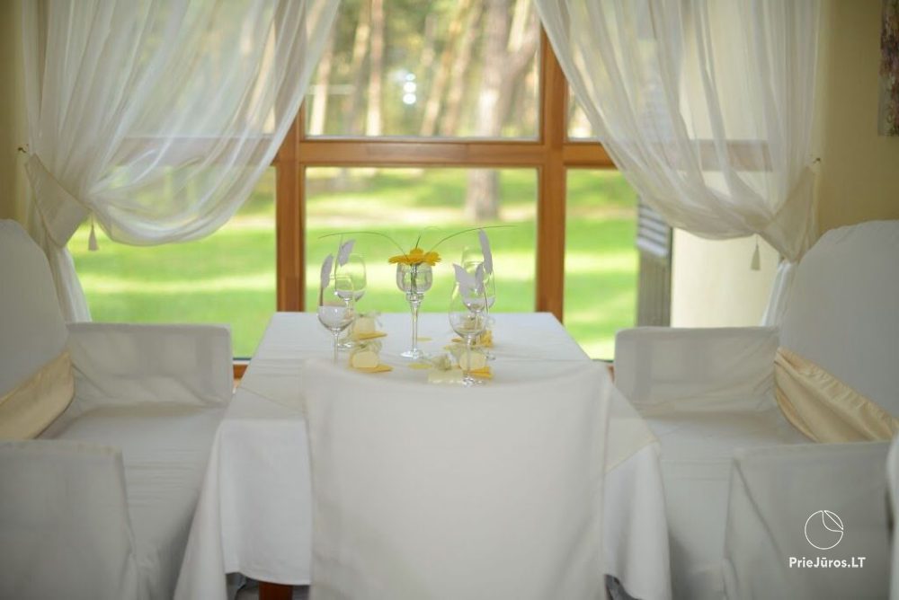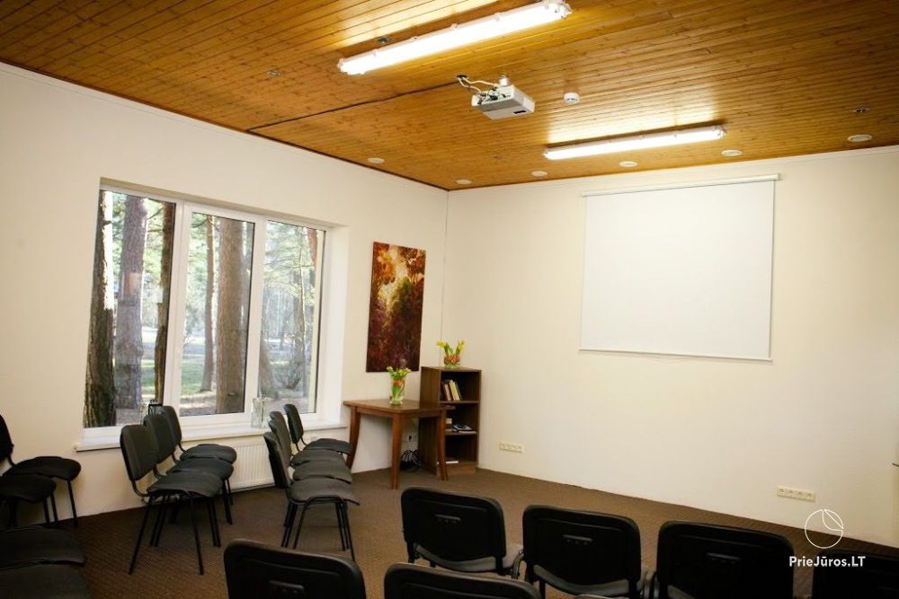 At the hotel "PRIE PARKO" we invite you not only to relax, but also to organize conferences for up to 30 participants. Various seating styles are available, we offer coffee breaks, lunches and buffets. Preparation of conference rooms and other additional services are discussed individually.