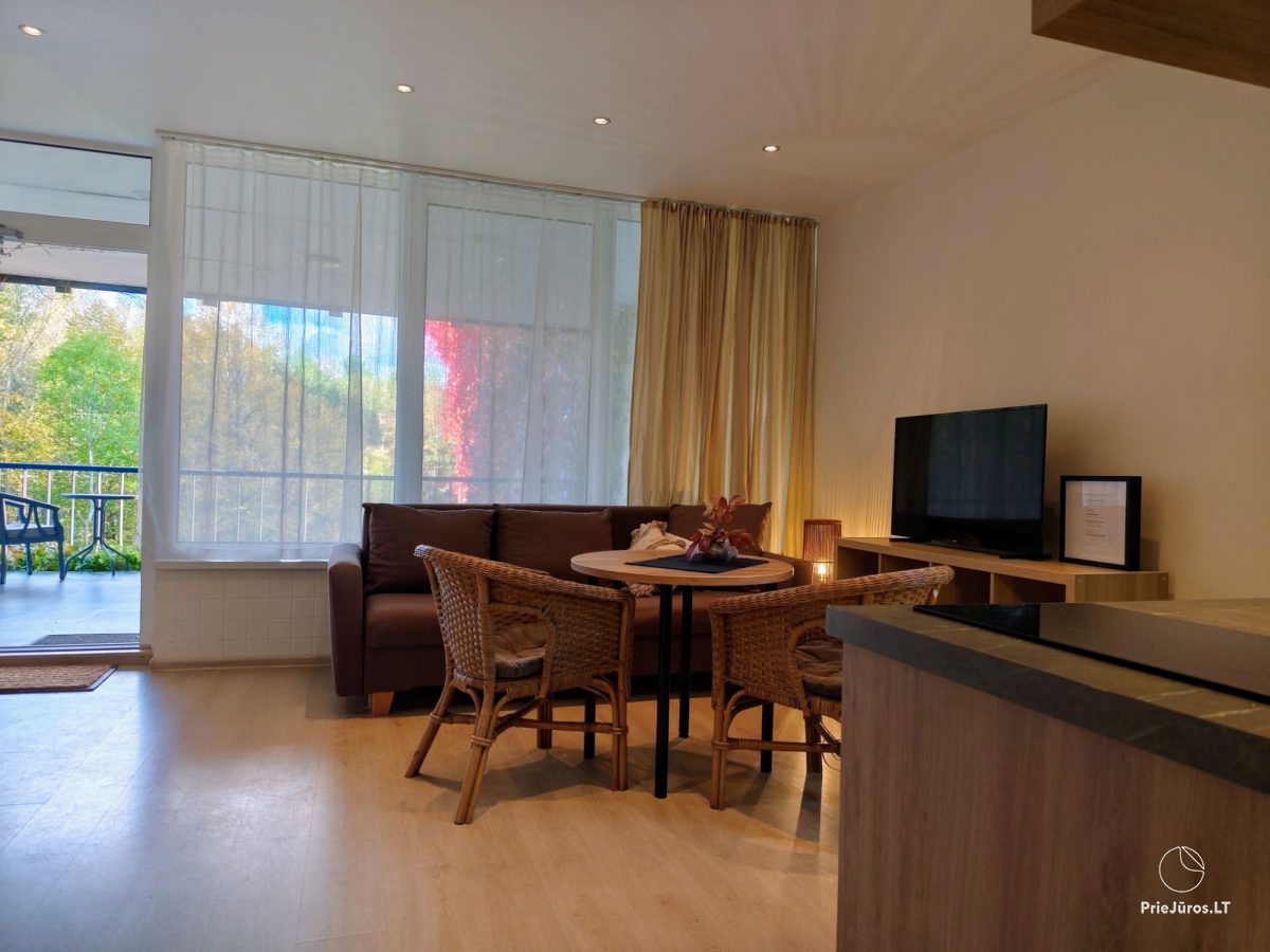 Эта квартира находится в очень хорошем месте: вдали от городского шума и суеты, в окружении леса, недалеко от моря.