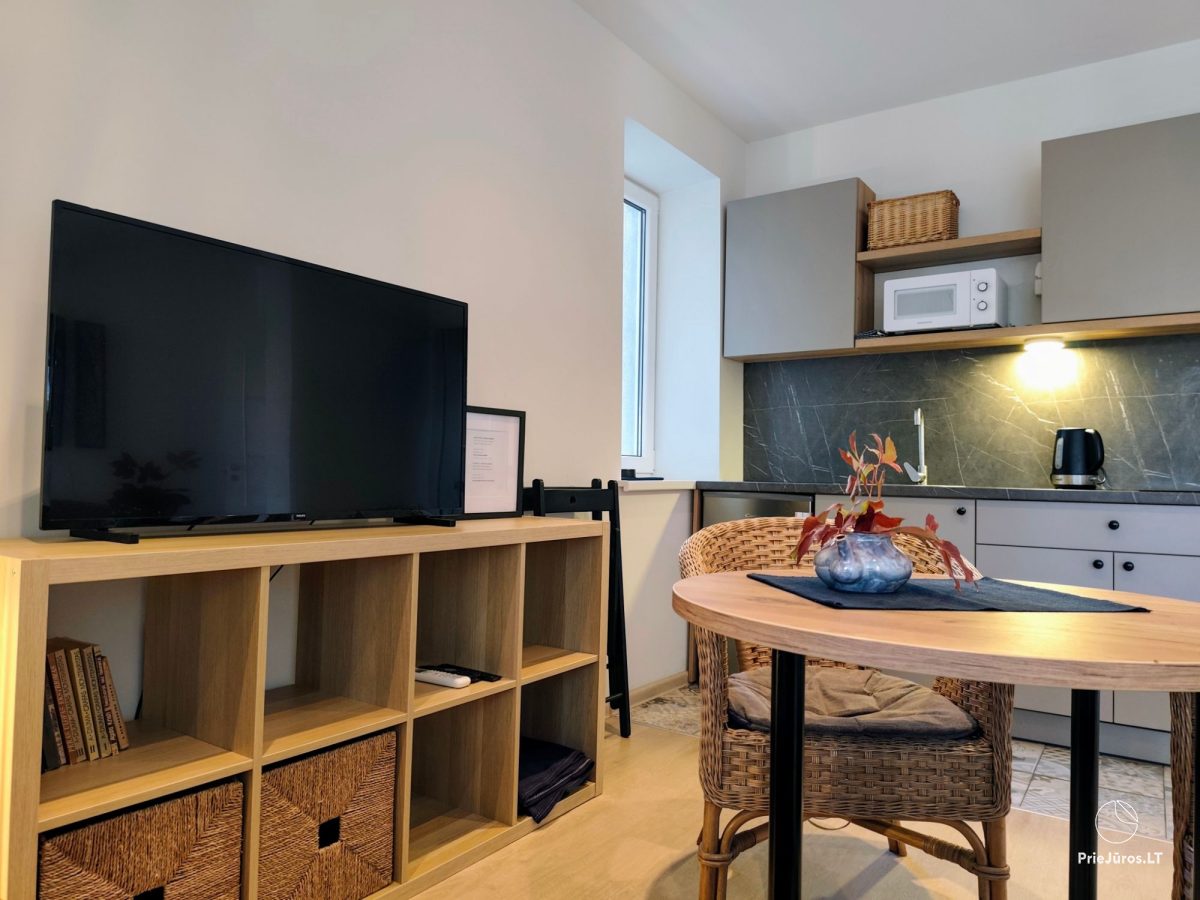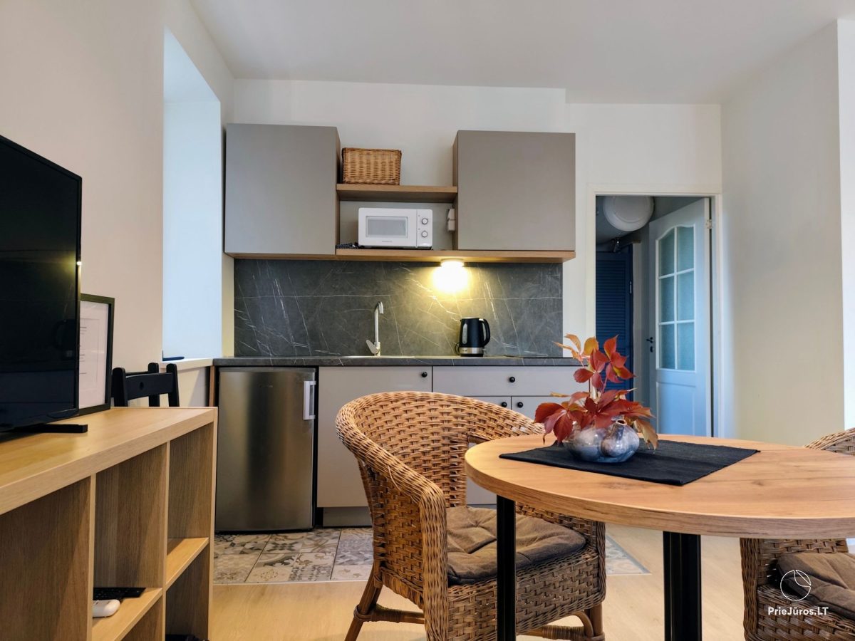 В нестандартной, недавно отремонтированной квартире в Ниде могут отдохнуть до 4 гостей.