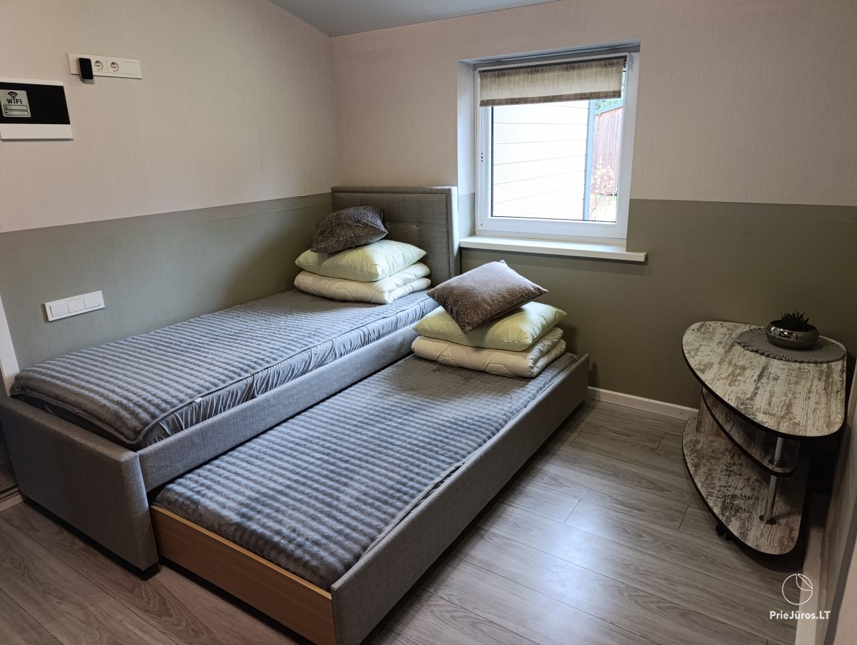 Уютная и спокойная обстановка даст вам возможность отдохнуть от городской суеты и расслабиться, слушая шум моря или наблюдая закат. Зона отдыха, расположенная на окраине Паланги, в Кунигишкиае, очень близко к морю, приглашает вас отдохнуть в тишине.