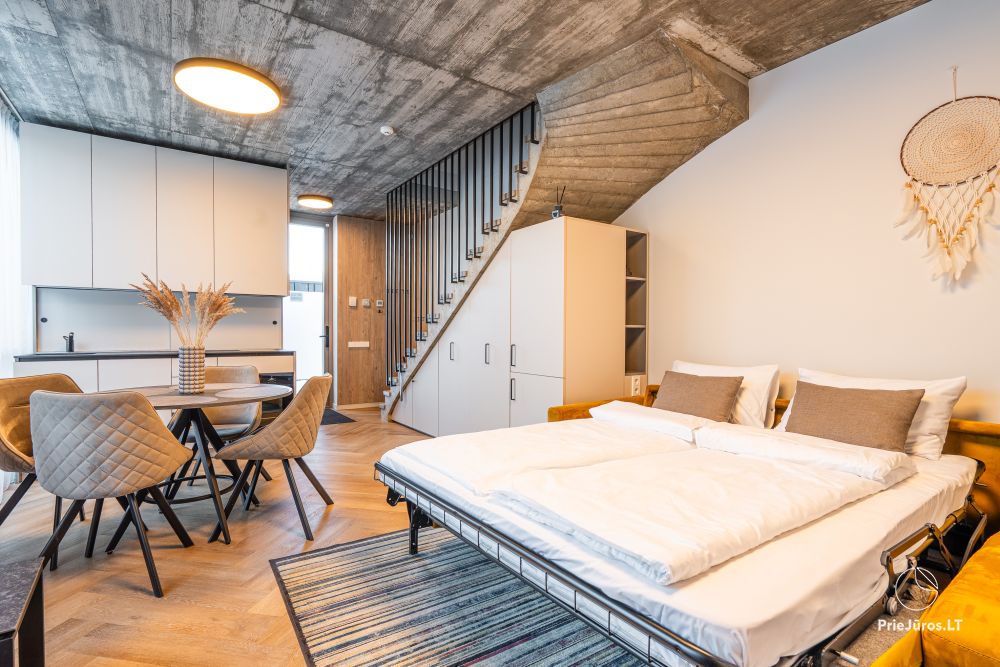Уютные апартаменты в Кунигишкиаи, расположенные примерно в 700 метрах от моря, созданы для спокойного и комфортного отдыха у моря. На закрытой территории к услугам гостей подогреваемый бассейн, сауна, джакузи и зона для барбекю на открытом воздухе для приятных вечеров. Апартаменты расположены на 2-м этаже и имеют балкон — отличный выбор для тех, кто ценит тишину, комфорт и отдых в стиле SPA вдали от городской суеты.