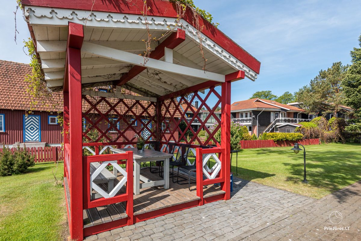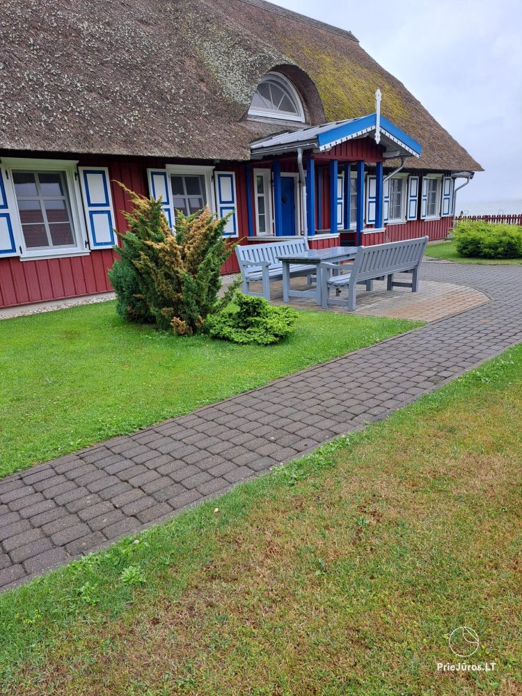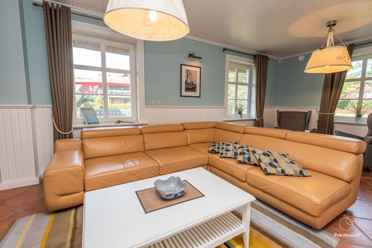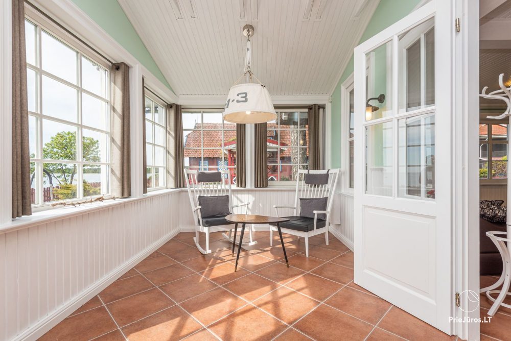 Испытайте уникальные ощущения в 110 кв. м. апартаментах Марю. Шикарная двухэтажная резиденция чарует ощущением пространства и комфорта. С застеклённой веранды апартаментов открывается выдающийся пейзаж Куршского залива, а утончённо элегантная и комфортабельная мебель этой зоны отдыха становится центром притяжения всей семьи и компании друзей. Уличная беседка с крышей предназначена для тёплых и звёздных летних вечеров с бокалом нежного вина.