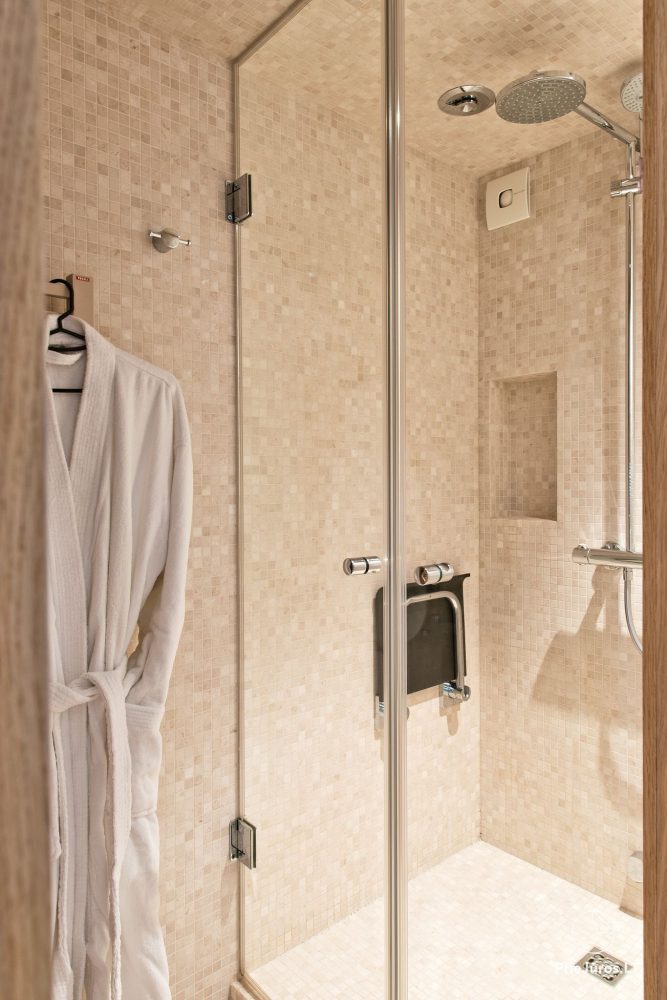 Свой день в апартаментах Черчилля Вы сможете начать в ванной комнате с обогреваемым полом и видом на небо. Здесь же Вы обнаружите уютные халаты, пушистые полотенца и паровой душ.