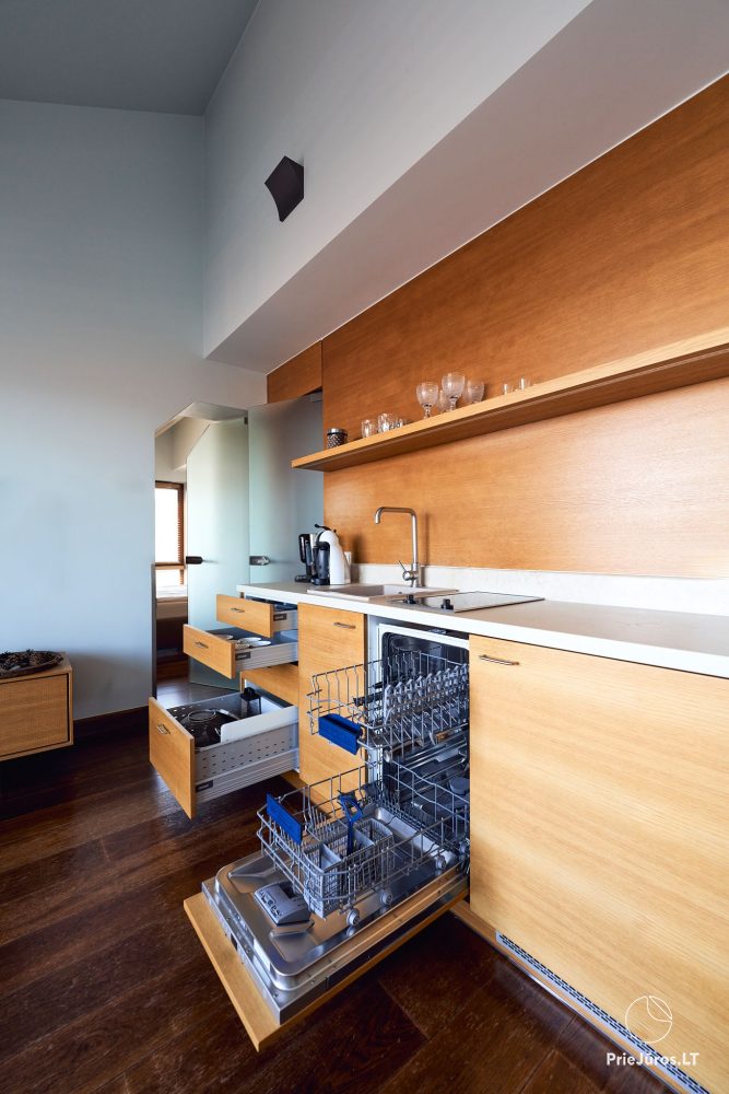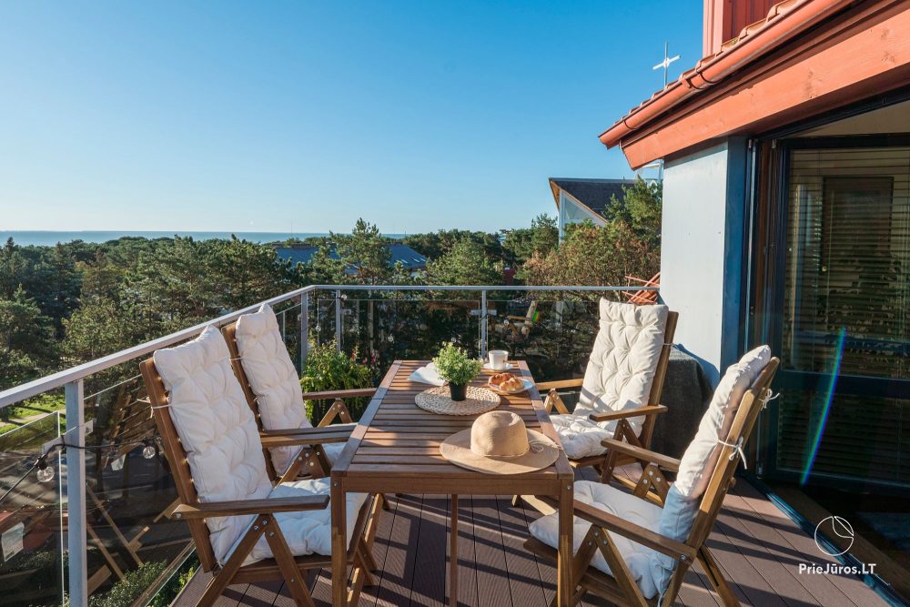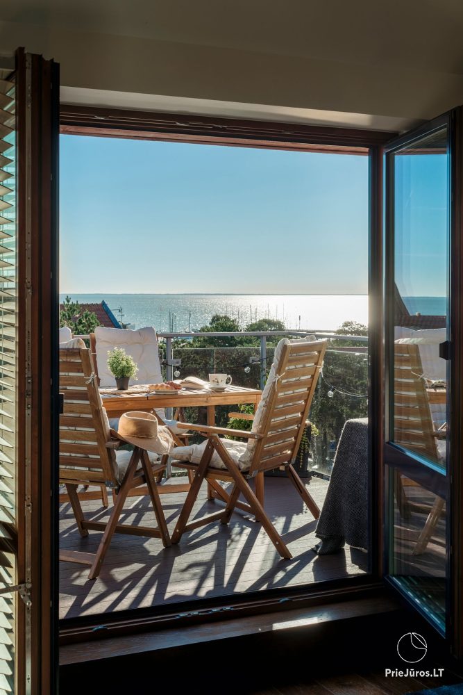 Роскошные и очень комфортные двухкомнатные апартаменты исключительного качества с потрясающим видом на Куршский залив и природные красоты Ниды, находящиеся под защитой ЮНЕСКО и всех людей доброй воли. Морские фотографии и цветовая гамма напомнят Вам о морской свежести и бесконечных путешествиях вглубь океанов, а просторная терраса позволит почувствовать себя так, как если бы Вы вдруг воспарили над ароматными соснами.