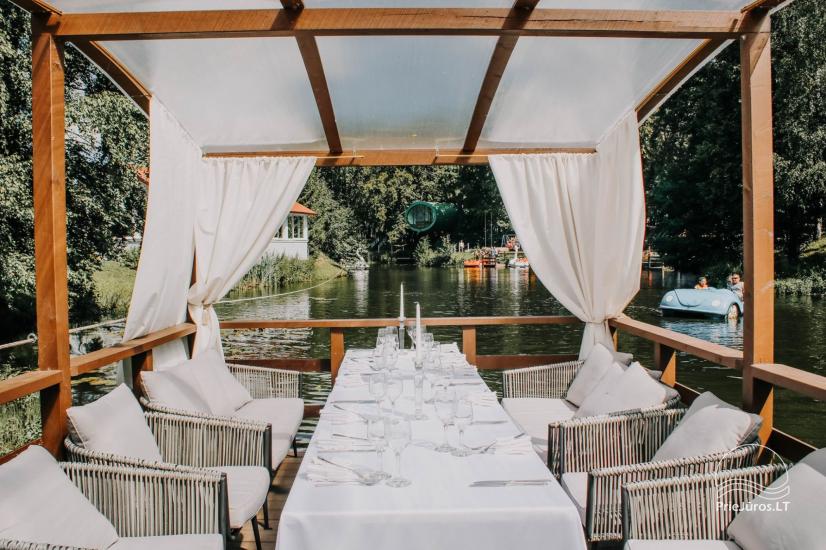 - Новая роскошная вилла Radailiai придаст вашему празднику уединение: роскошный зал, частная территория, эксклюзивный пруд-остров и мост на остров, комфортабельные номера и апартаменты для ночевки.